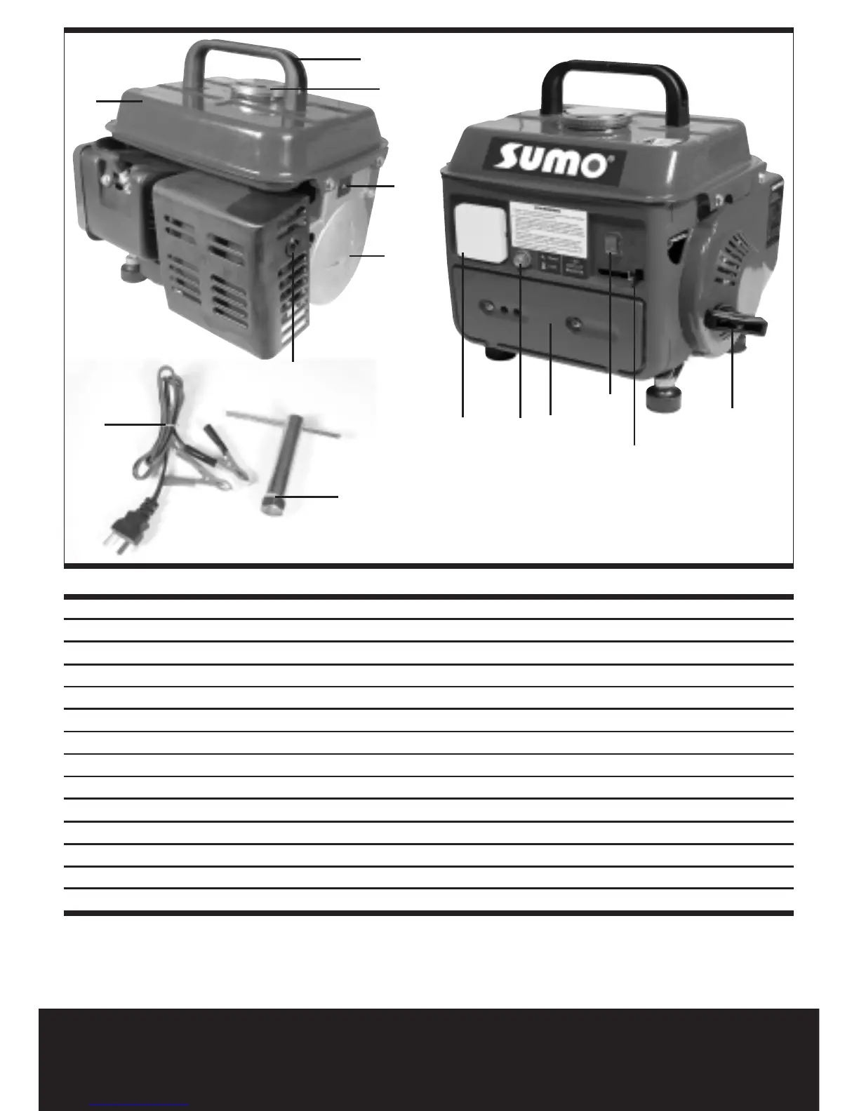 Sumo SML34GEN - PARTS IDENTIFICATION; Generator main components; Control panel and sockets; Engine, exhaust, and accessories