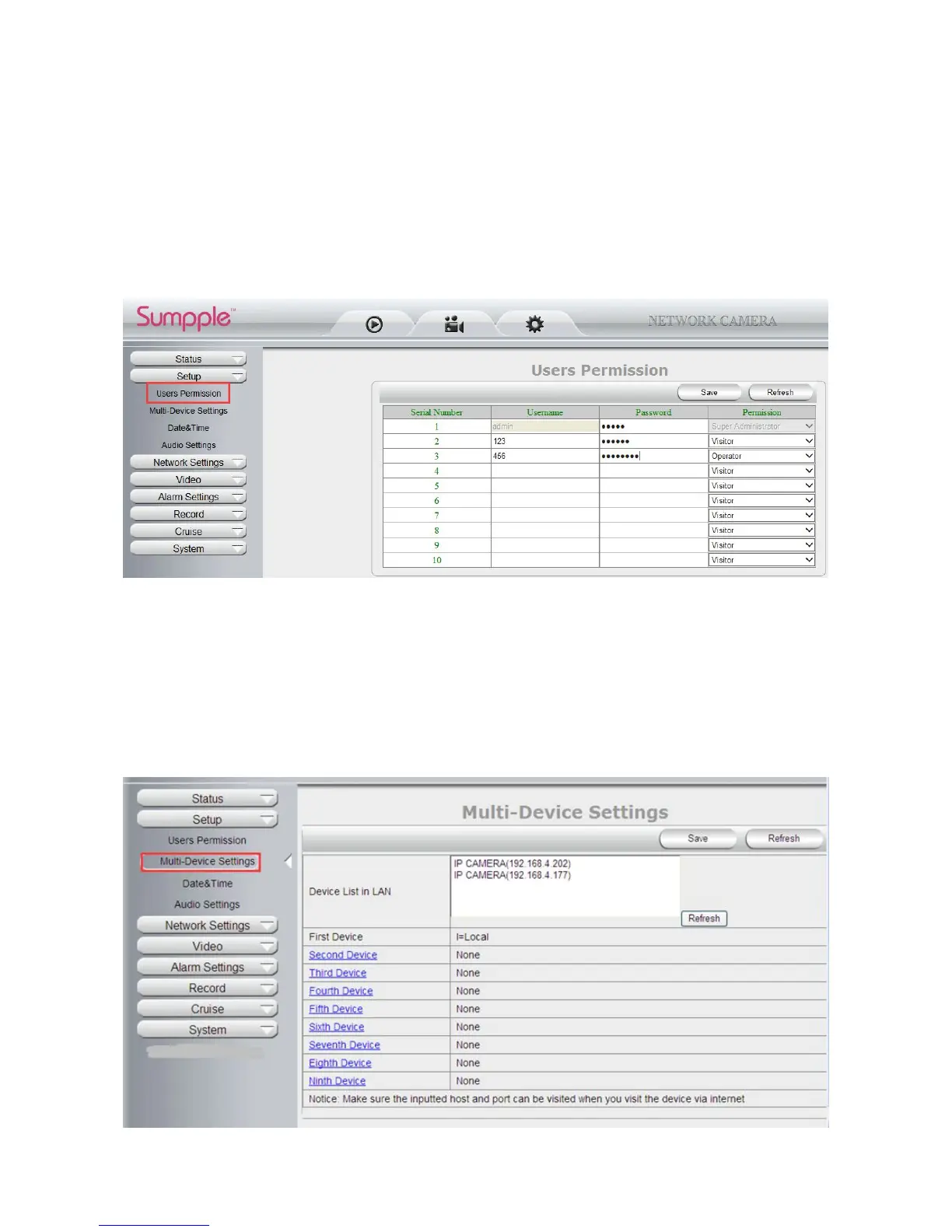 Operator: Lower permission than administrator, can do some operation such as pan/tilt control and set some
