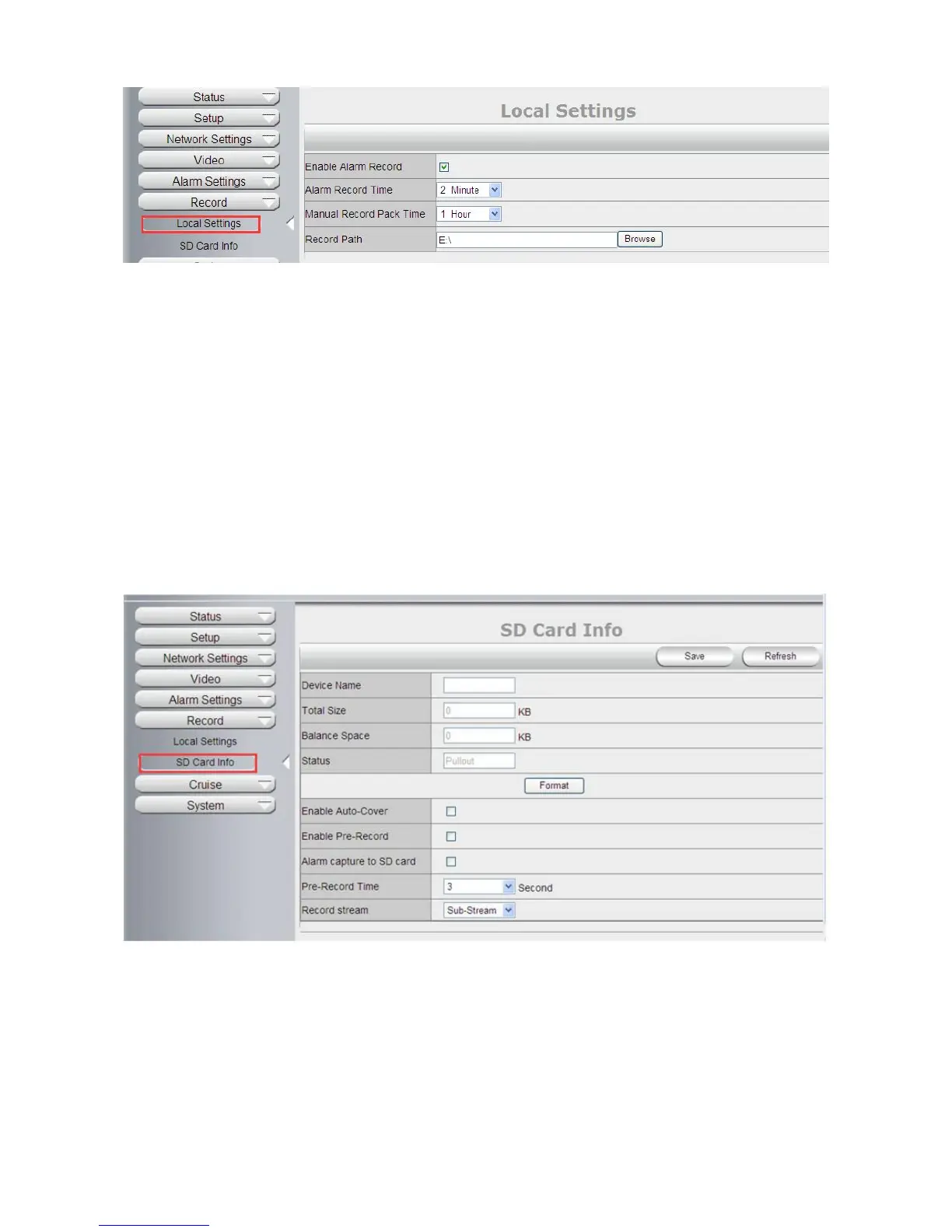 Open Pre-recording: Set Pre-recording function (Record the video before alarm triggered).