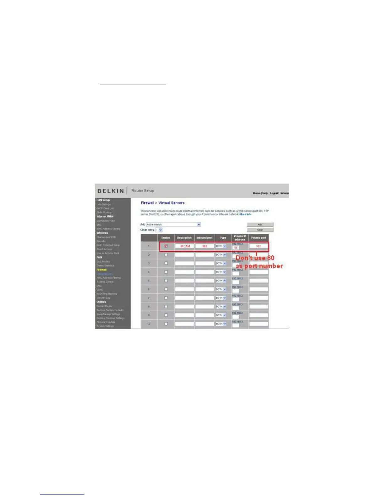 3. Input the port (don’t use 80) and IP address, then click save.
