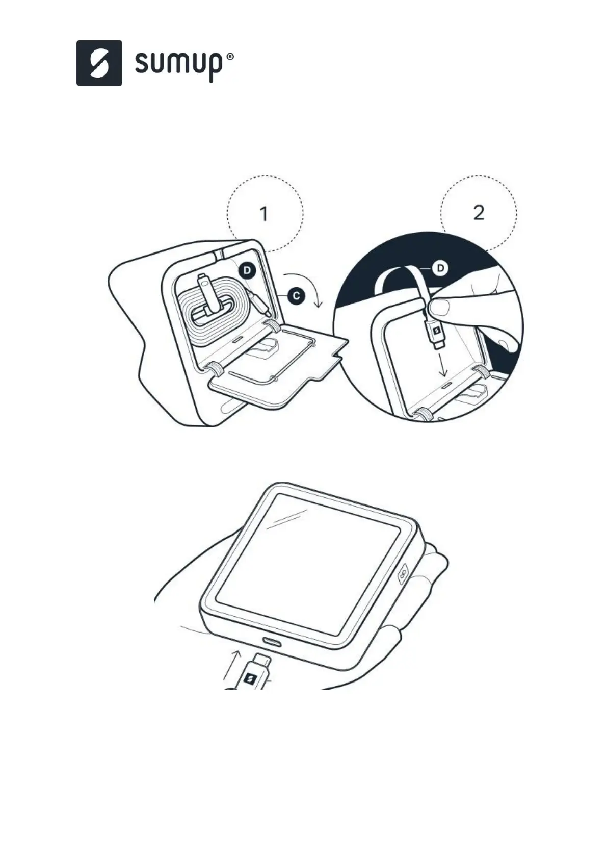 To charge SumUp Solo using the USB 2.0 type C cable directly