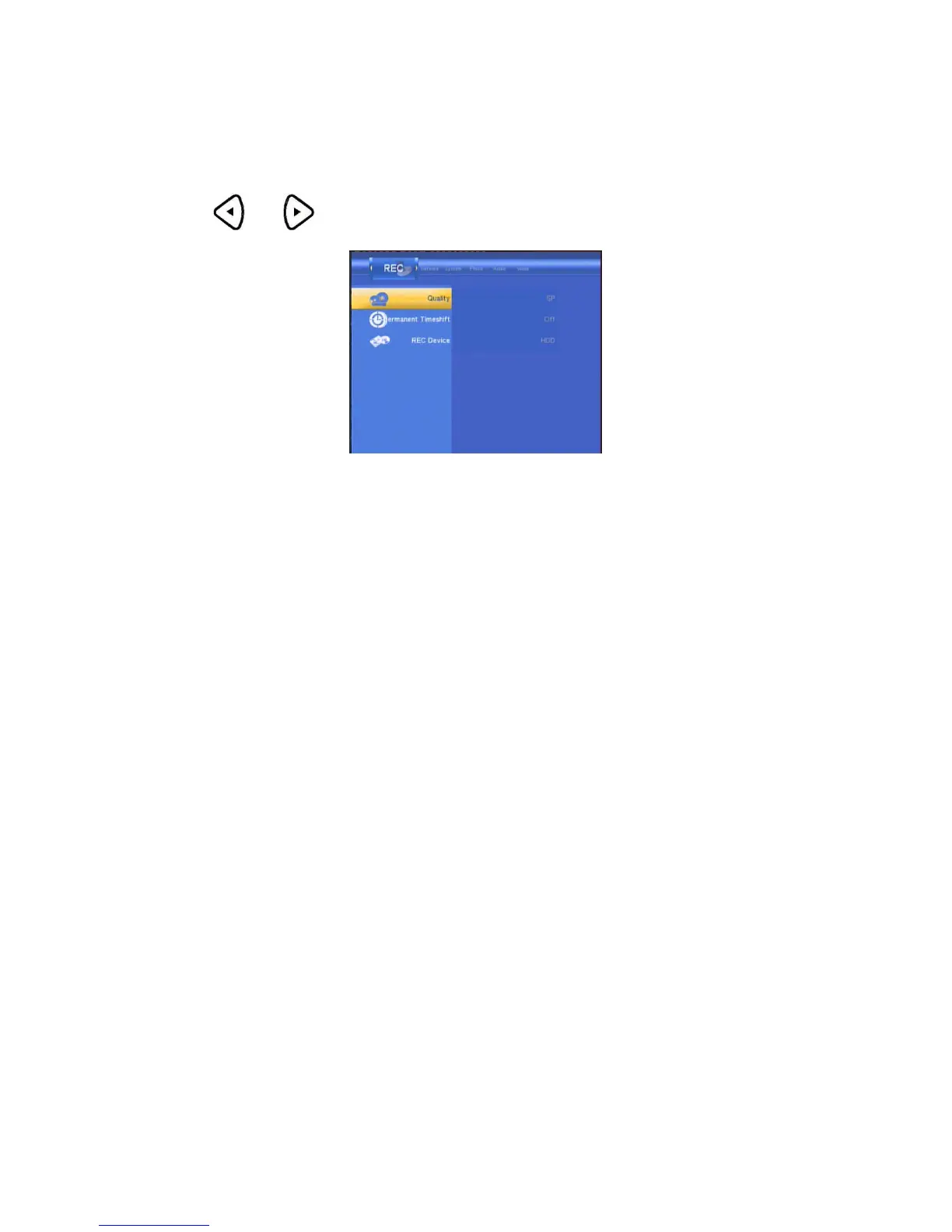 and on the remote control to select the Record tab from the menu bar.