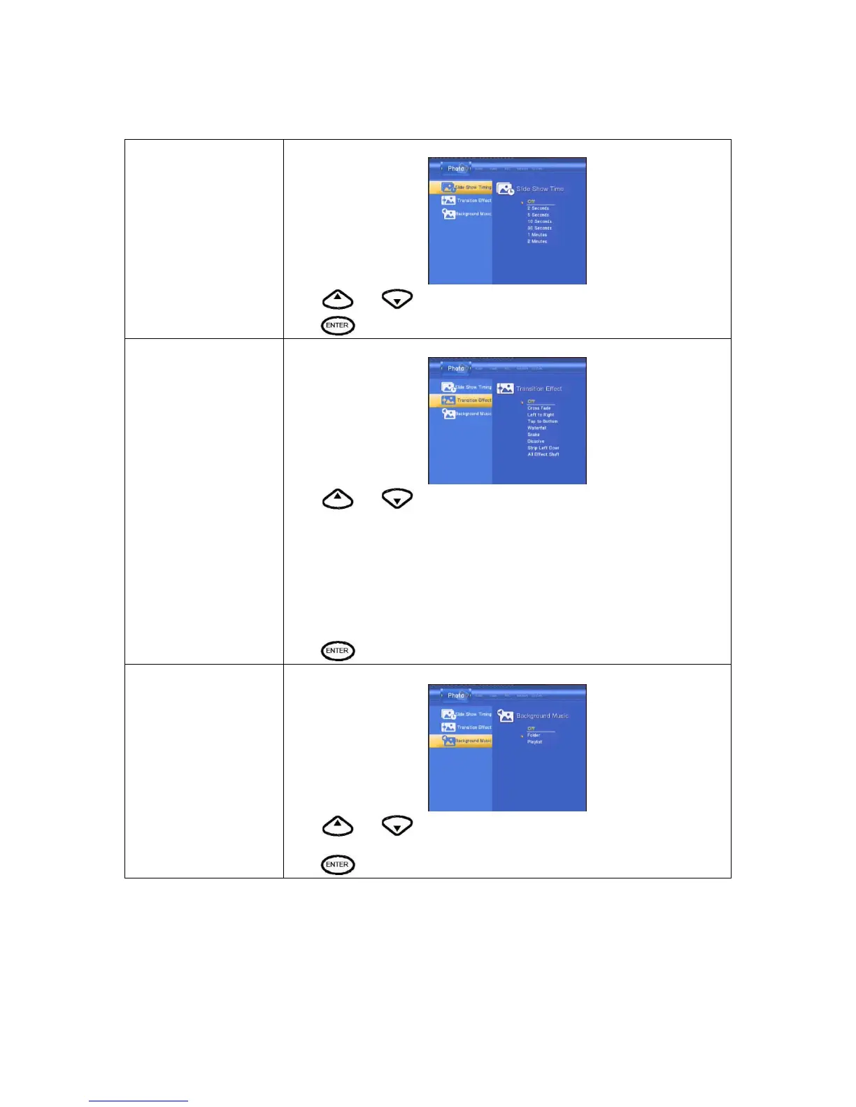 Select to set the transition effect of photos.