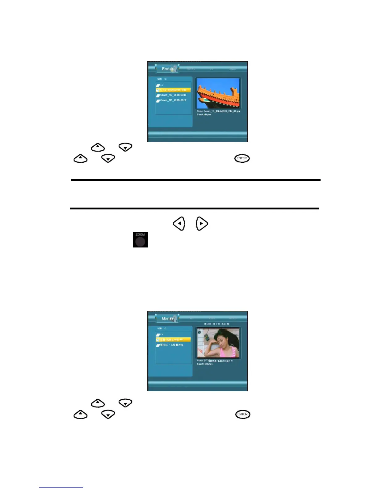 This browsing photos function supports High Definition Photo (JPG,JPEG,BMP)Playback.