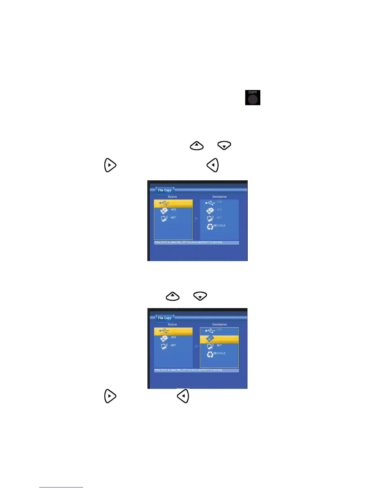 The Setup Menu allows you to copy files at NET,USB,HDD each other.