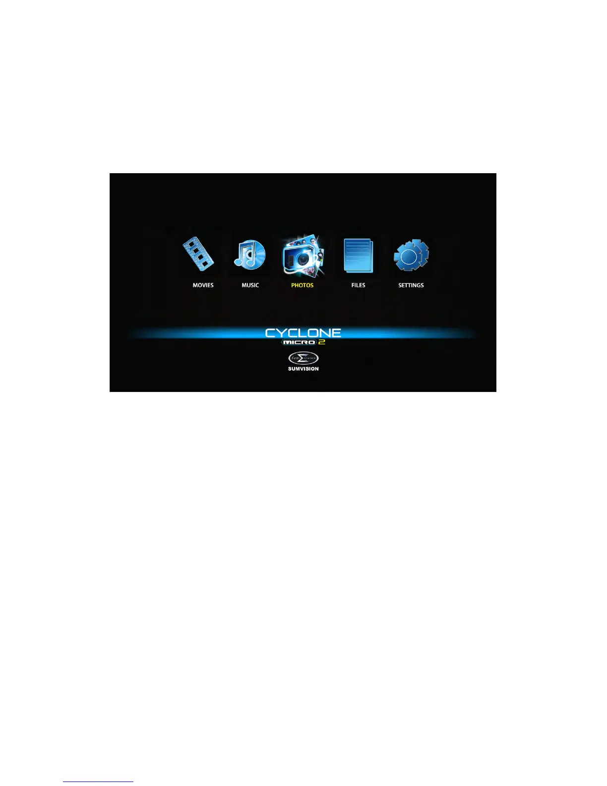 UponstartingtheCycloneMicro2thismenuwillbedisplayedfirst.