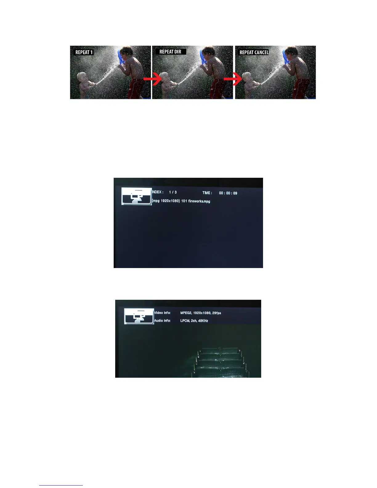 Pressing the INFO button again, the following menu will appear providing