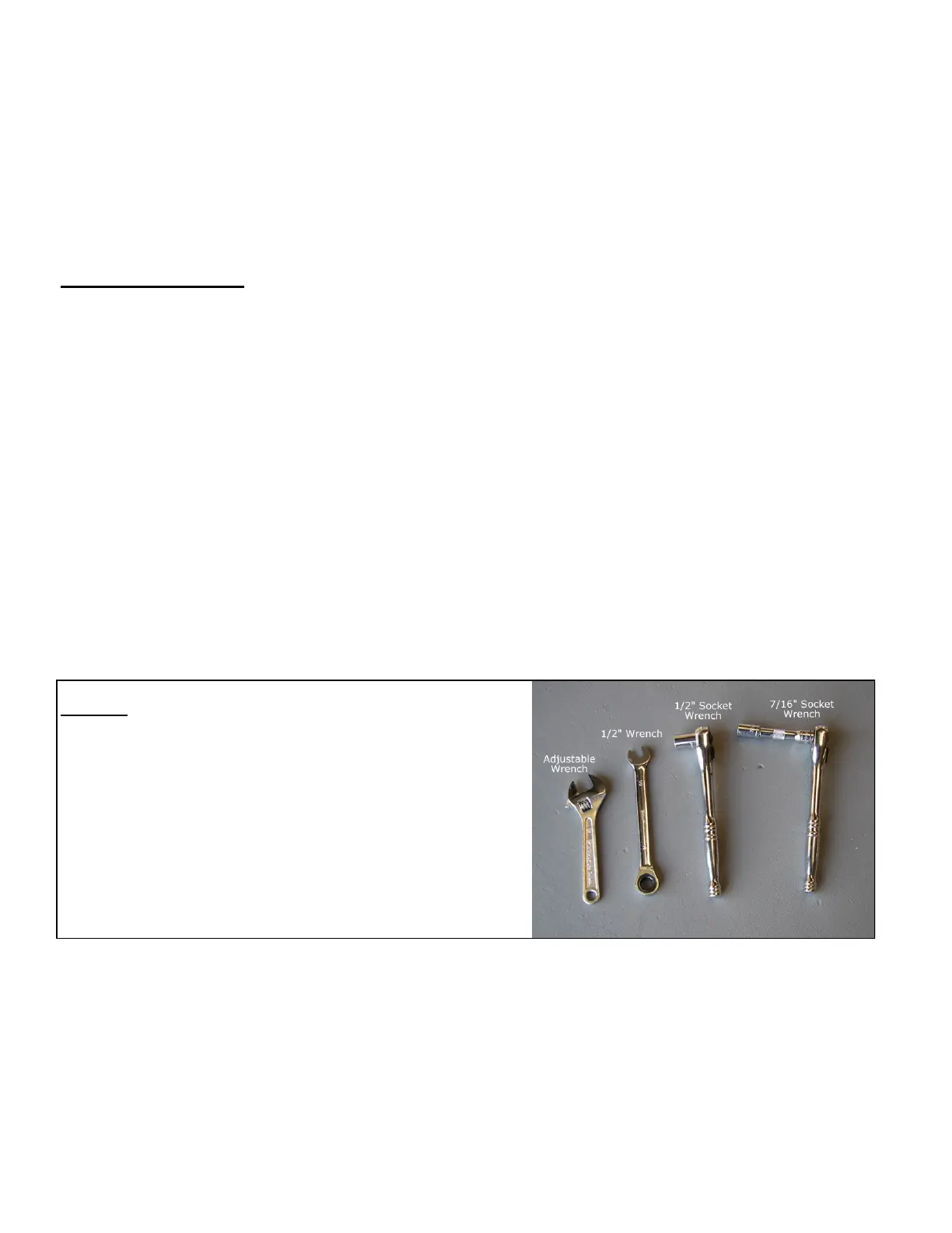 semble your table you will need an adjustable wrench, 1/2" wrench, 1/2" socket wrench,