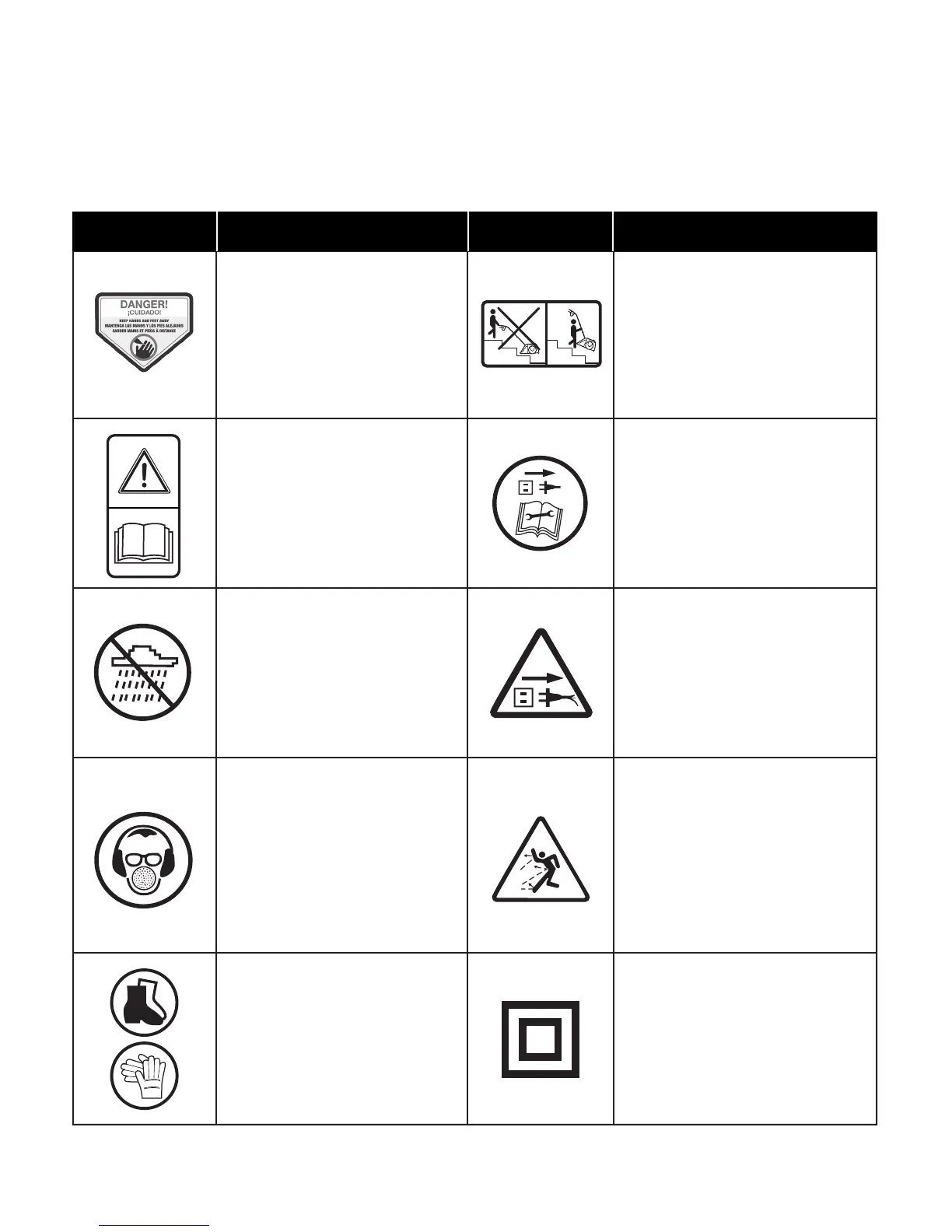 The following table depicts and describes safety symbols that may appear on this product. Read, understand and follow all