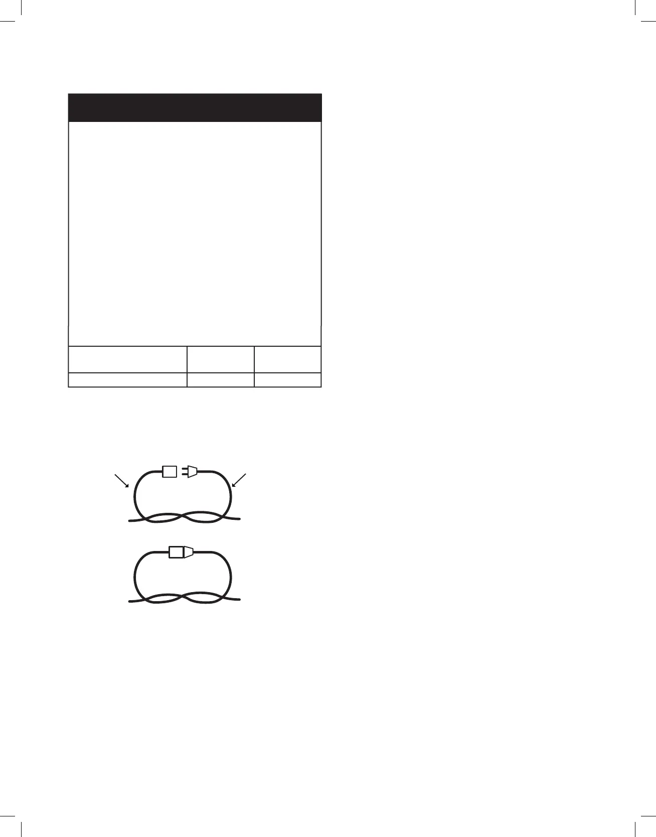 Table 1. Method of Securing Extension Cord