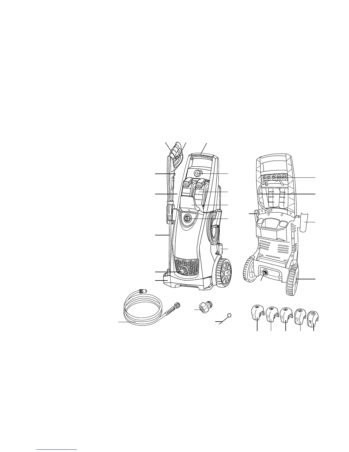 below to the electric pressure washer in order to familiarize yourself with the location of the various controls and adjustments.