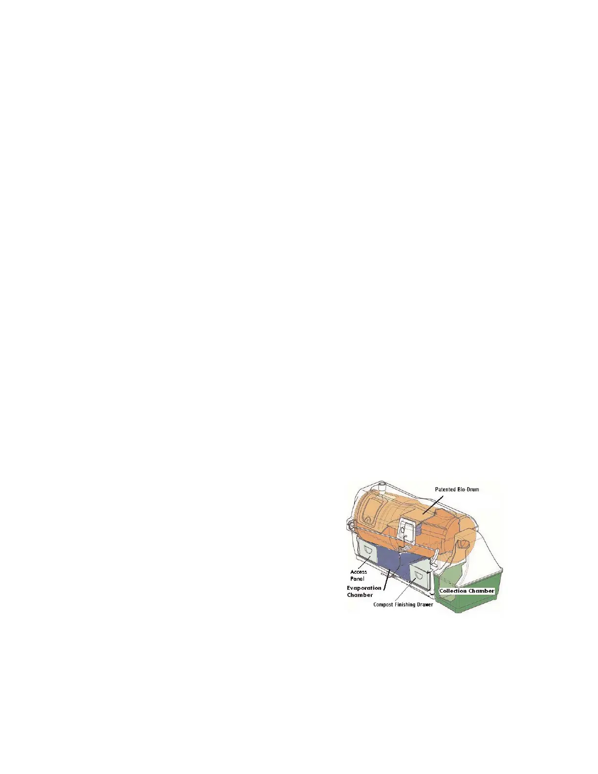 simply turning the Bio-drum™. Excess liquid will exit through a screen in the bottom of the drum into the evaporation