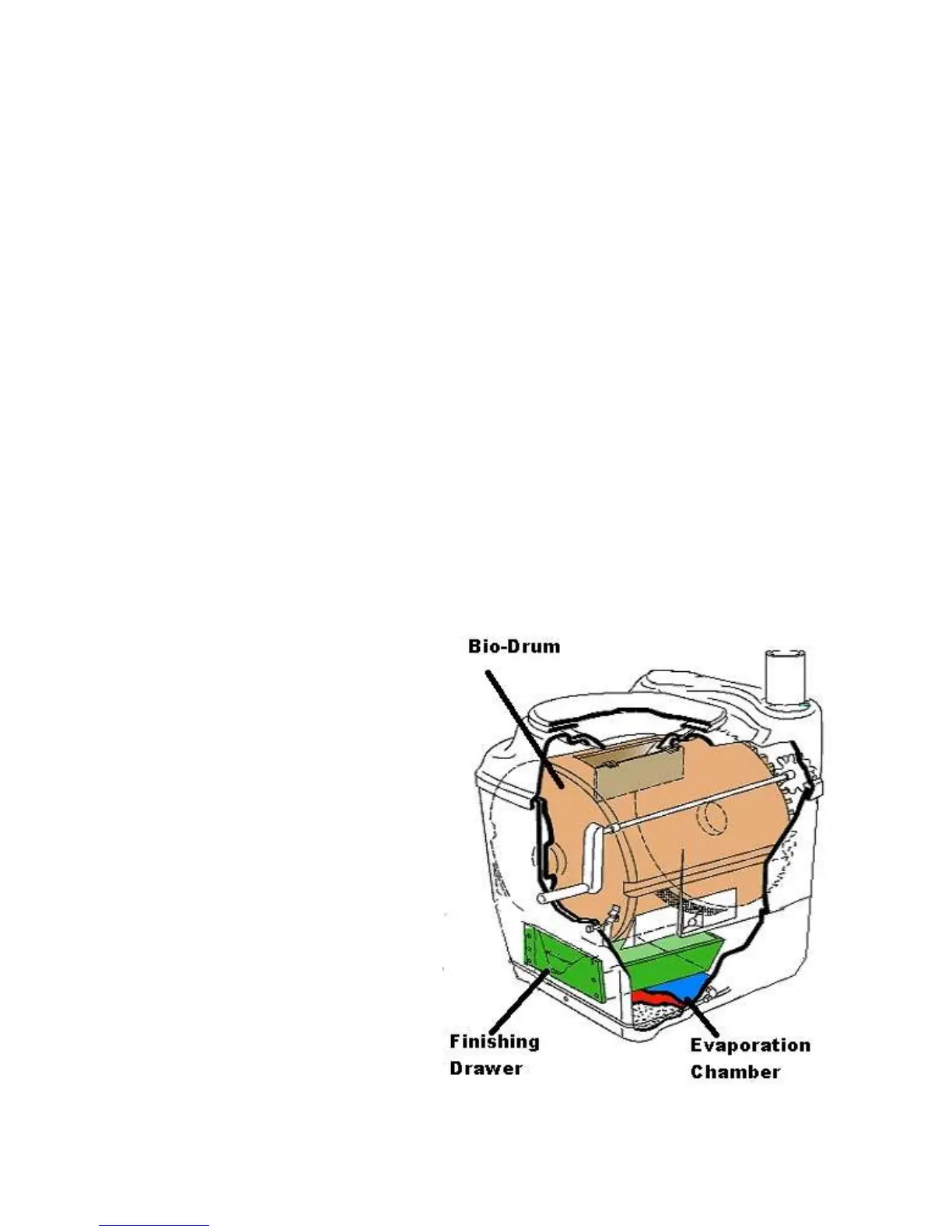 design. Each of the three chambers; patented Bio-drum, compost finishing drawer, and
