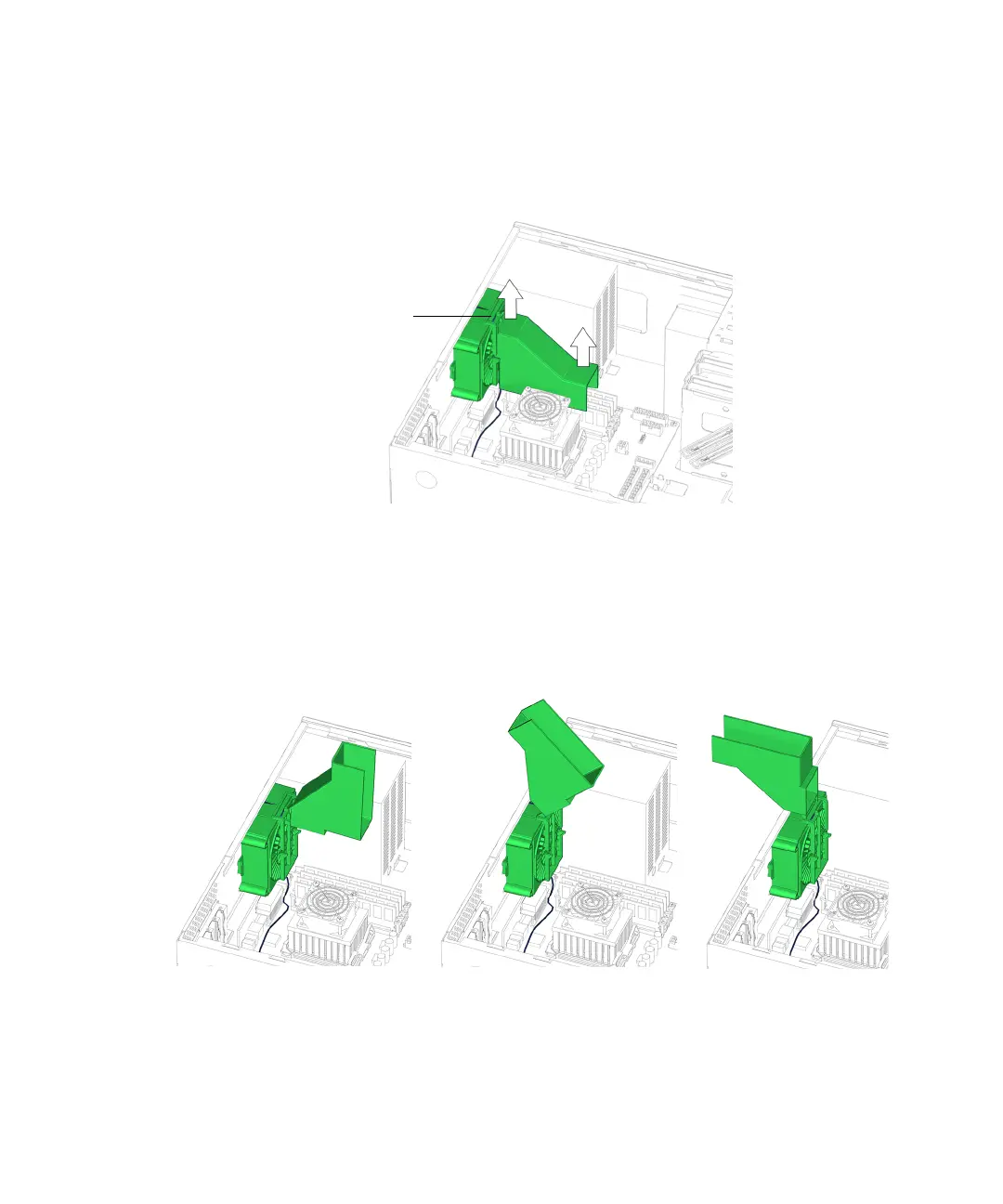 4. Slide the duct up until it is flush with the edge of the rear fan bracket.