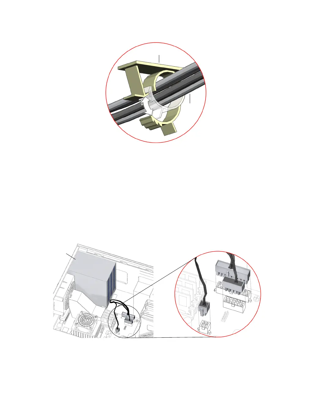 b. Lift the power supply cable up and away from the motherboard.