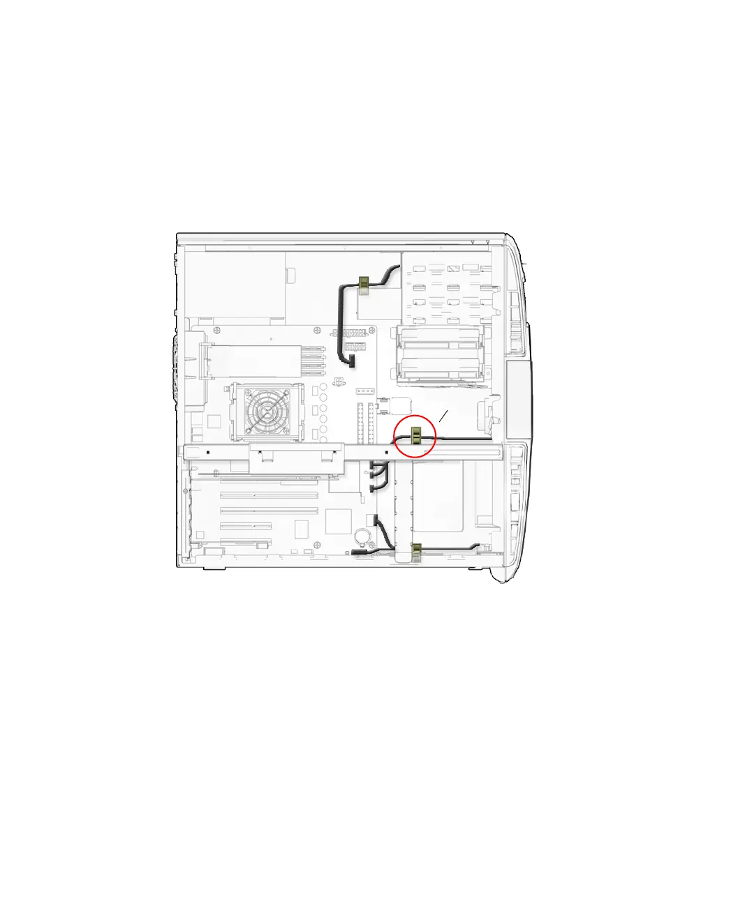 3. Open the bezel cable clip at the center of the chassis and remove the front fan