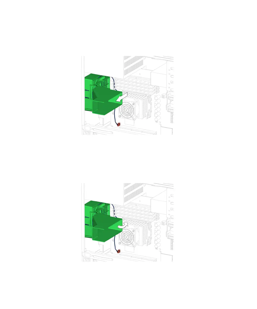5. Swing the duct in, so that the guide rails of the duct are flush with the guide rails
