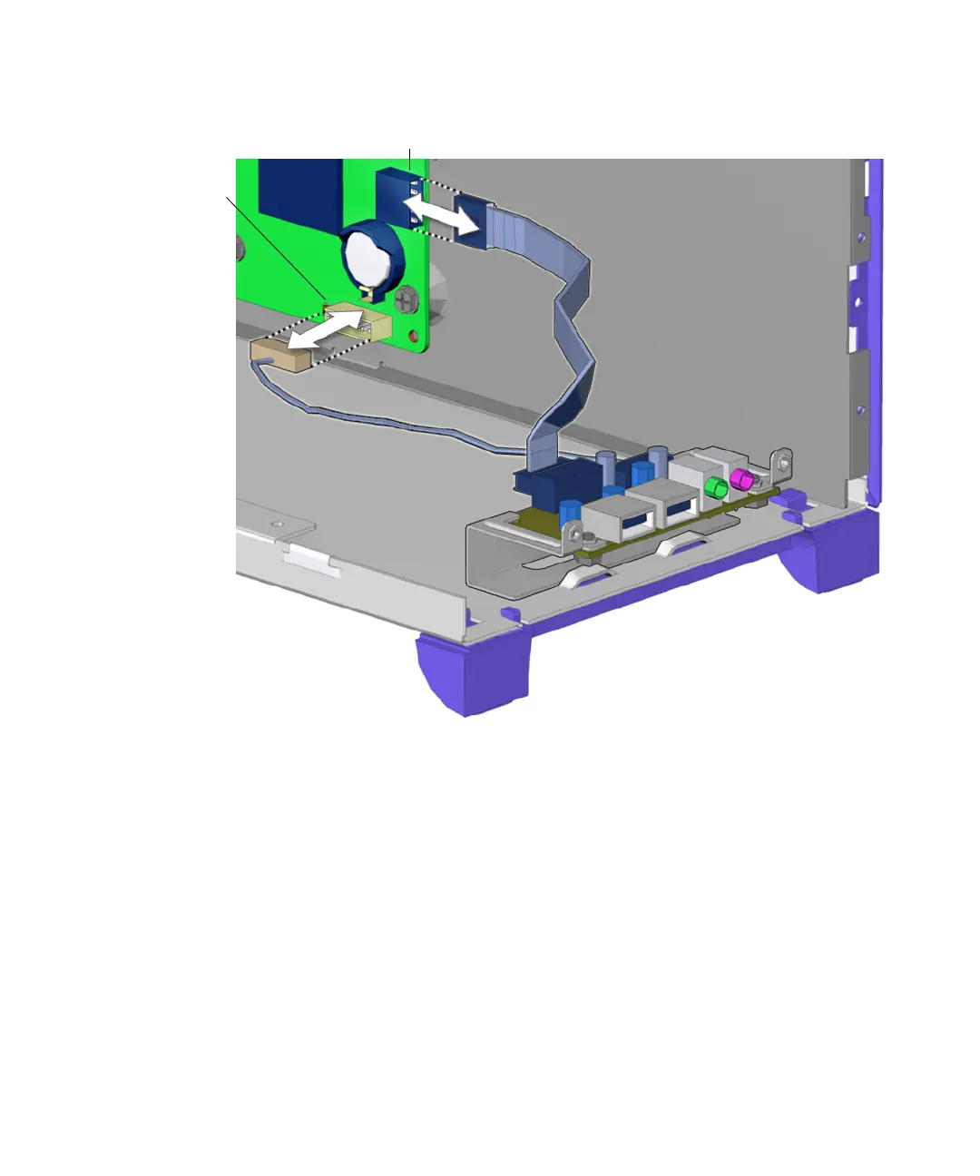 5. Guide the audio USB board cables through the I/O cable clip at the bottom of the