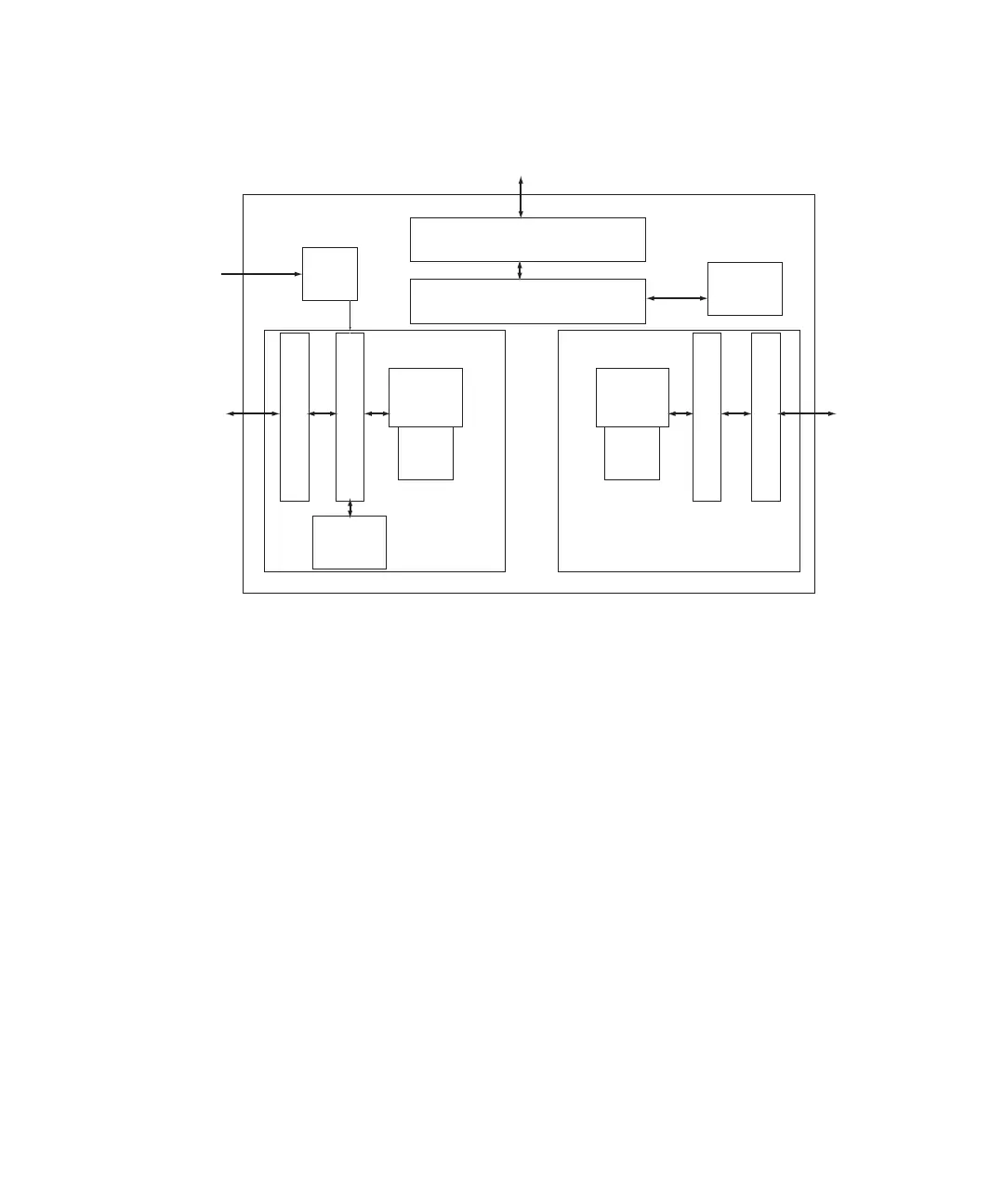 The PCI-B interface is a 64-bit/66MHz PCI leaf with an internal arbiter that supports