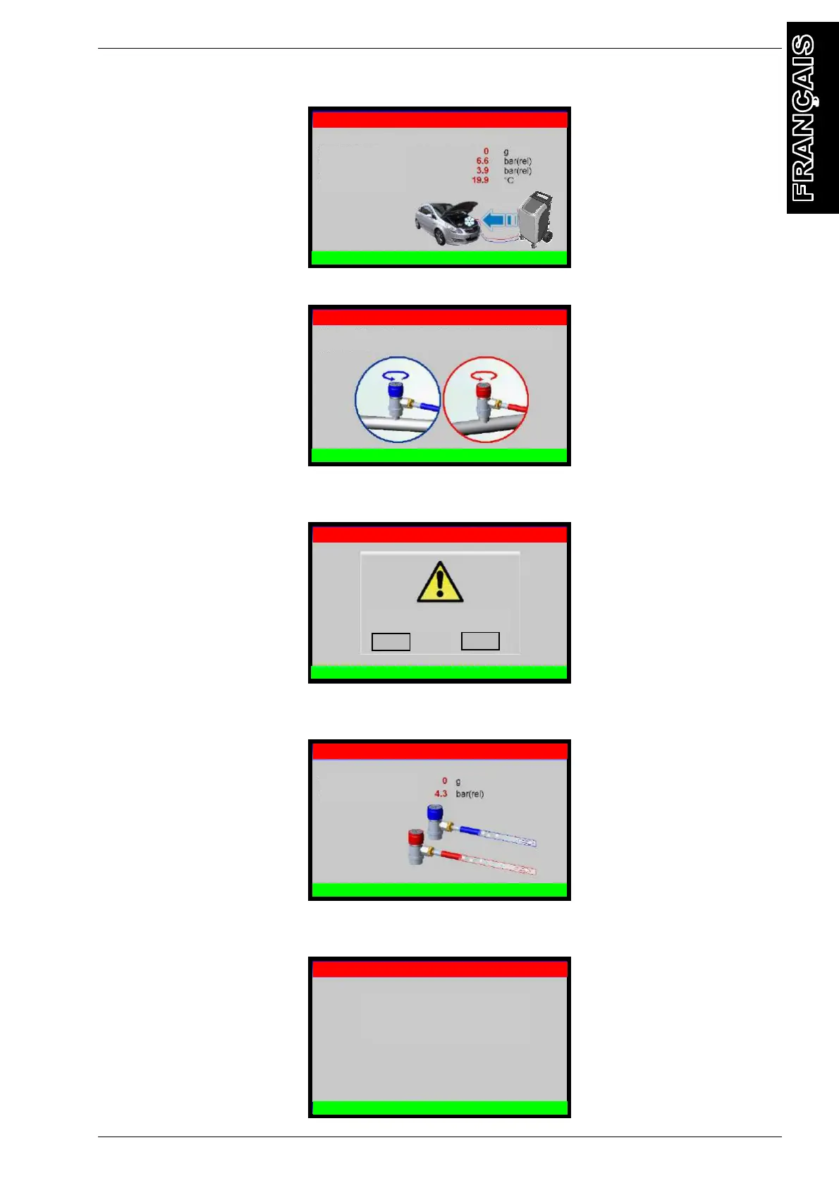 La machine récupère le réfrigérant restant dans les tuyaux flexibles de service, puis l'écran