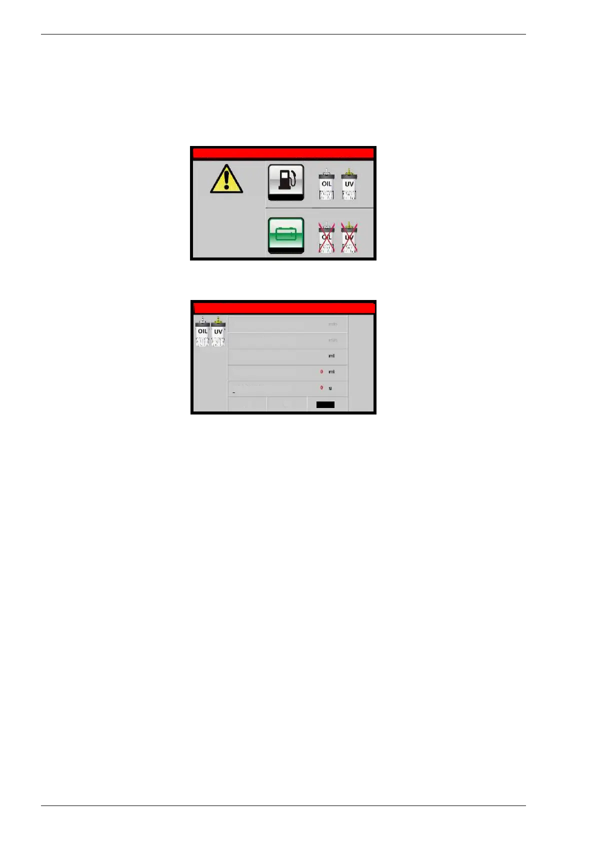 Dans PROCÉDURE MANUELLE sélectionner INJECTION HUILE + UV, l'écran suivant