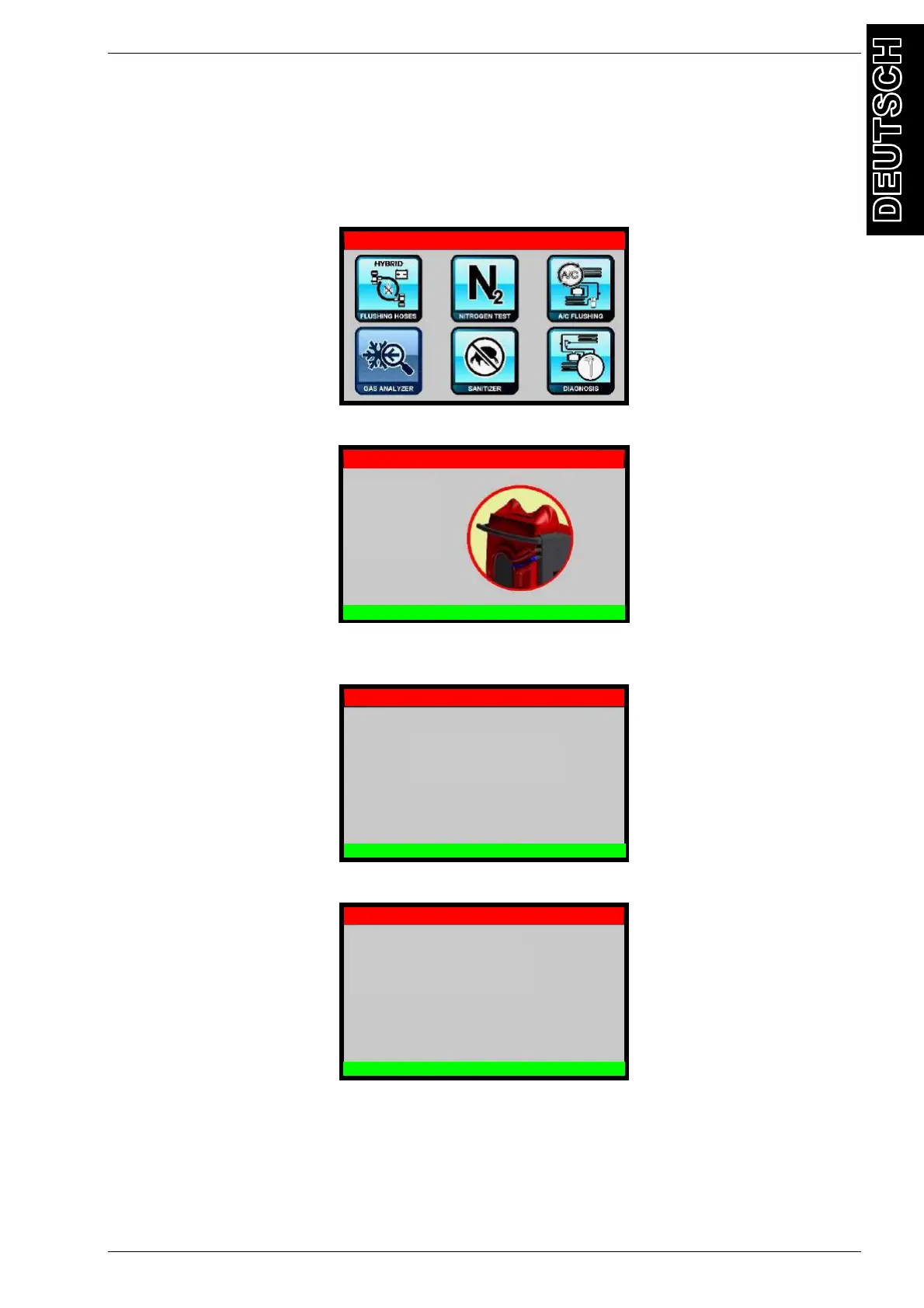 Danach wähle man SCHLAUCHSPÜLUNG; Folgende Anzeige erscheint: