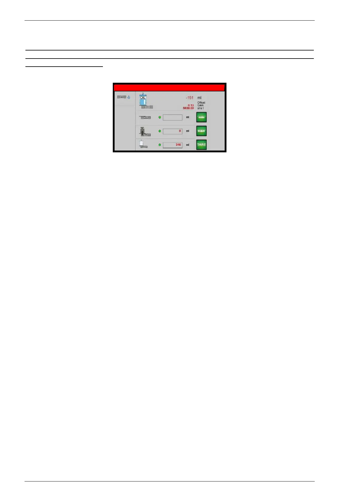 Bezugswert „0" bewegen und die Verfügbarkeit um ein paar Gramm Öl in dem Behälter