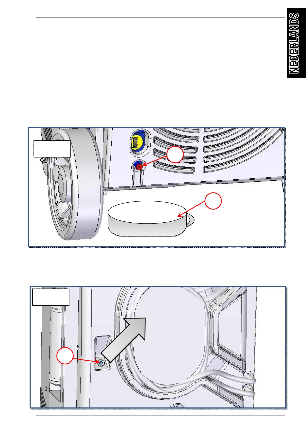 2) Plaats een reservoir (ref 4 Afb.23). onder de drainagedop (ref 2, Afb.23).