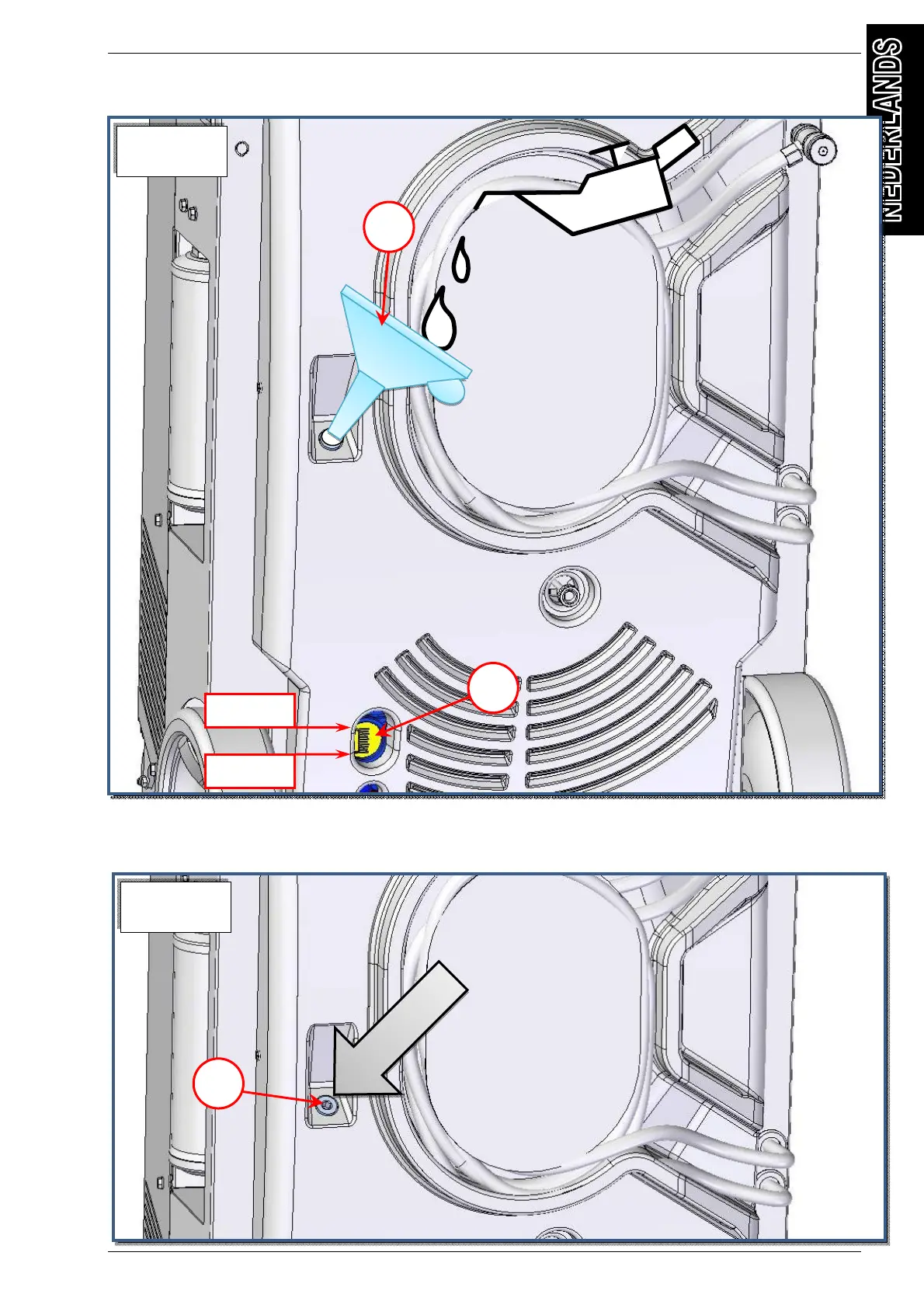 6) Giet nieuwe olie in via de vulopening door middel van een passende trechter (ref 5,