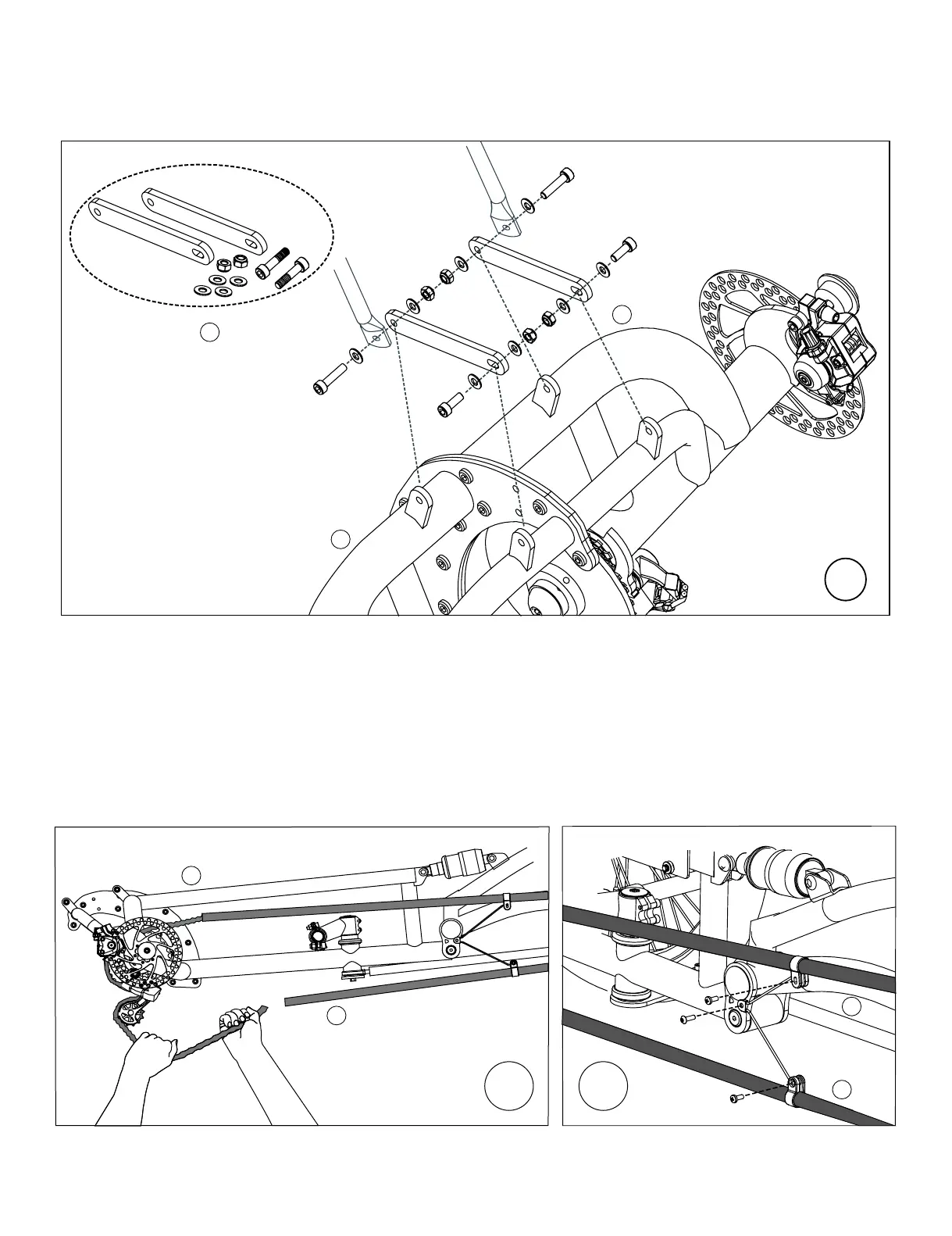 Install #21 Chain Tube Assembly to #1 Main Frame at frame pivot bolt using supplied hardware and spring. Position chain tubes to avoid interference with
