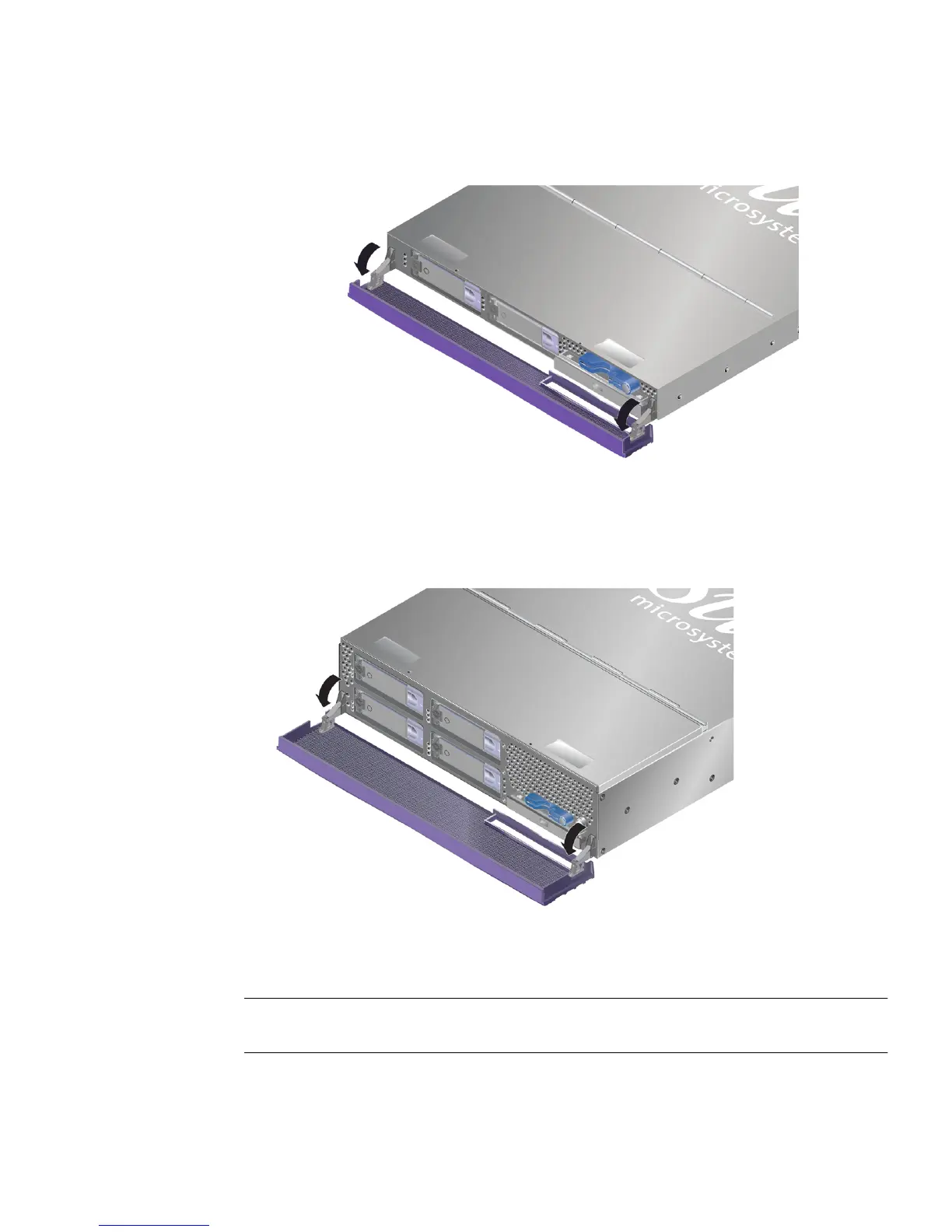 Sun Microsystems Fire V240 - FIGURE 2-1 Opening the Bezel (Sun Fire V210 Server); FIGURE 2-2 Opening the Bezel (Sun Fire V240 Server)