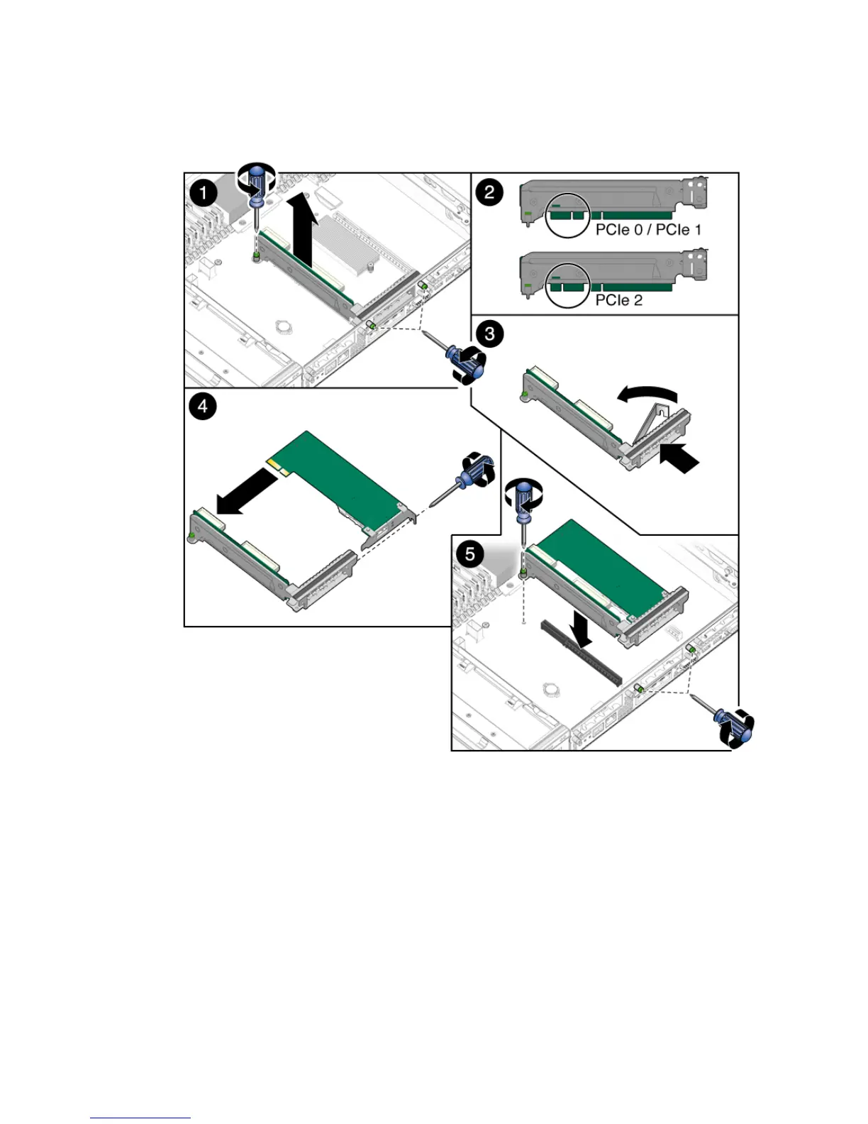 FIGURE 4-9 Installing Lower PCIe/XAUI Cards in the PCI Mezzanine