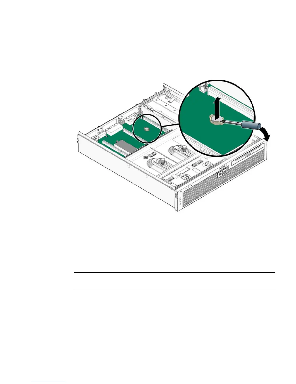 Note – The Sun Netra T5220 server uses one of three lithium CR2032 batteries (part