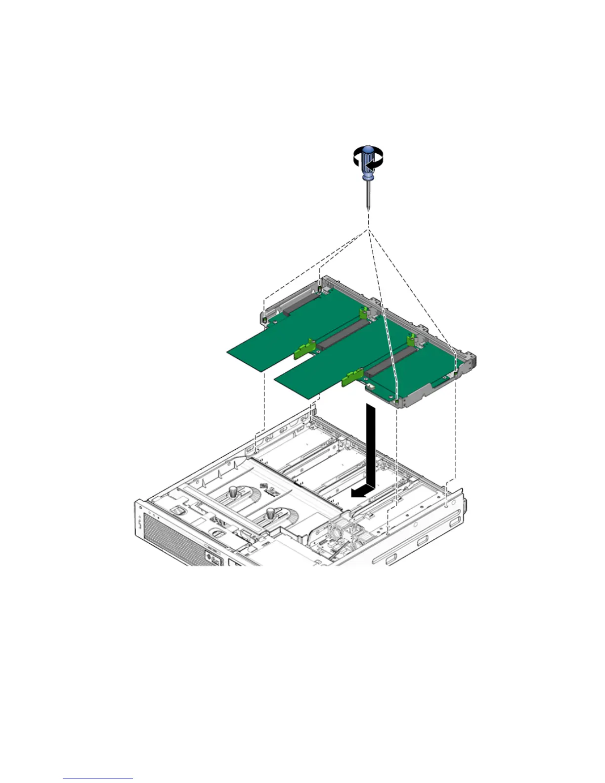 FIGURE 6-1 Lowering the PCI Mezzanine and Tightening the Screws