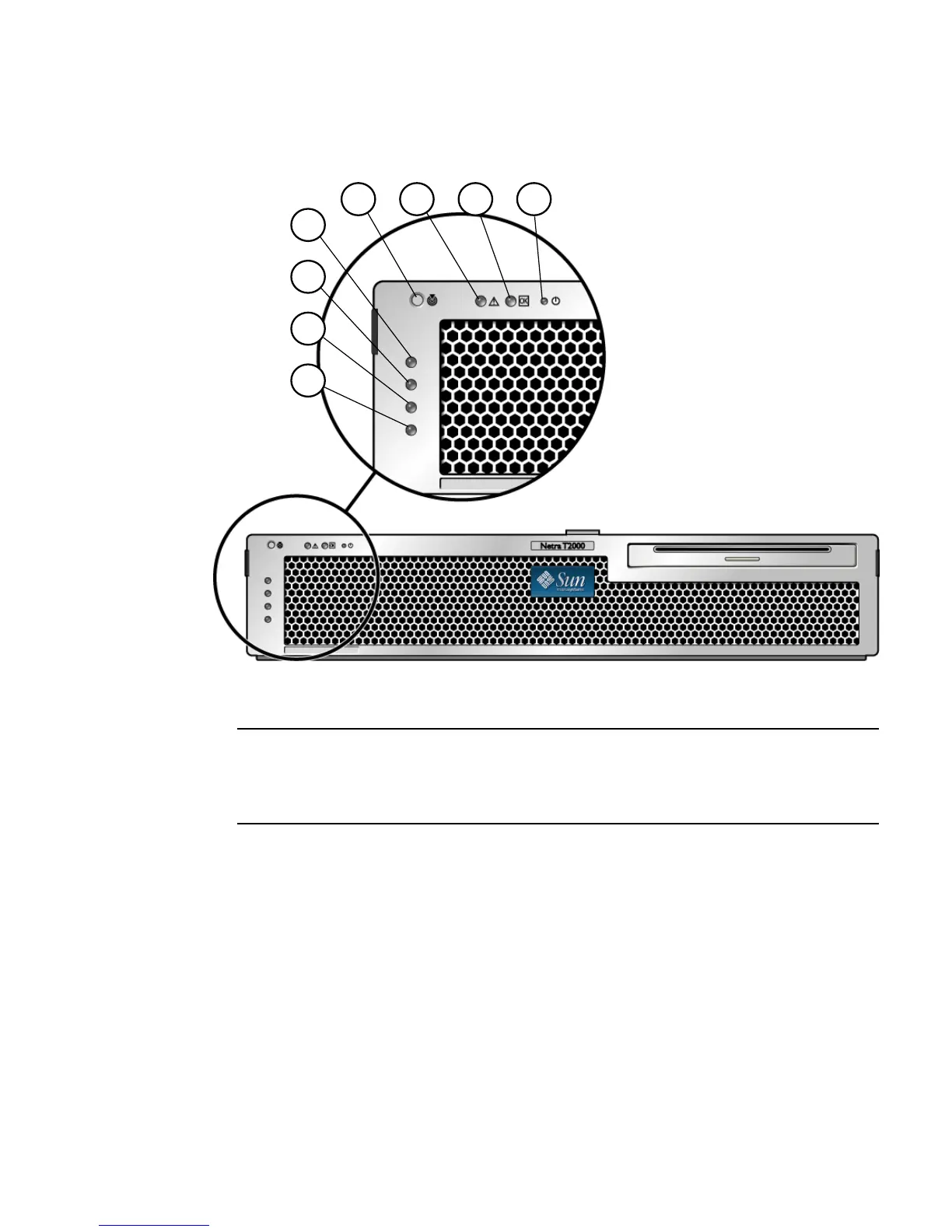 FIGURE 1-2 Location of the Bezel Server Status and Alarm Status Indicators