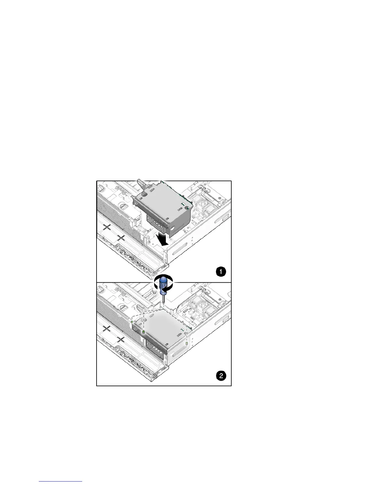 FIGURE 3-11 Setting the Media Bay Assembly Into Place and Tightening Screws