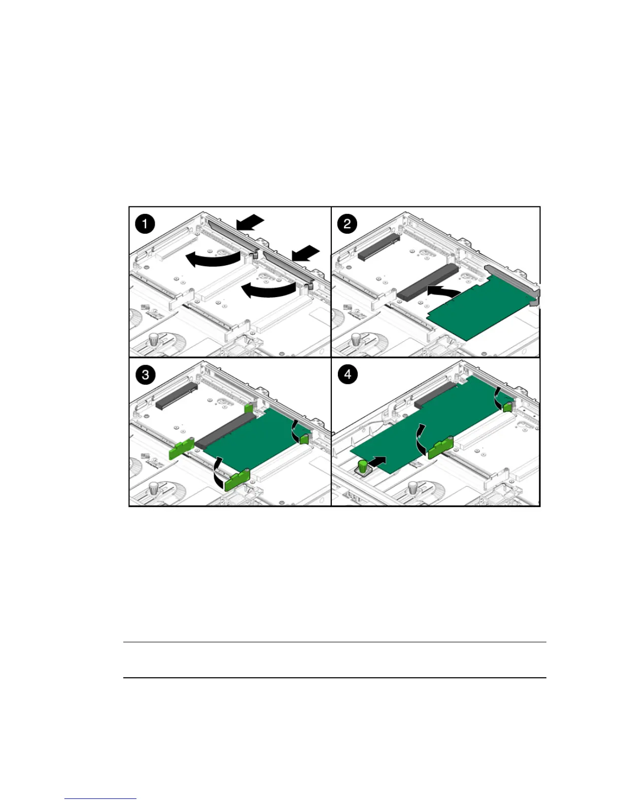 5. Lower the card into position on the PCI mezzanine, then slide it to the right to