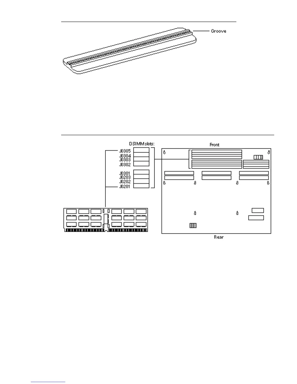 7. Holding a DSIMM at its edges, place it into the DSIMM plastic guides.