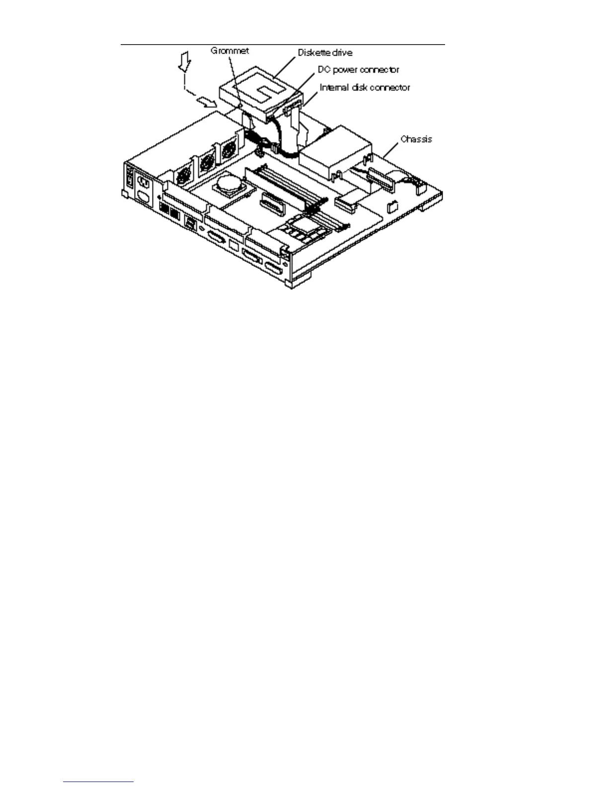 3. Connect the DC power connector to the diskette drive and the internal disk