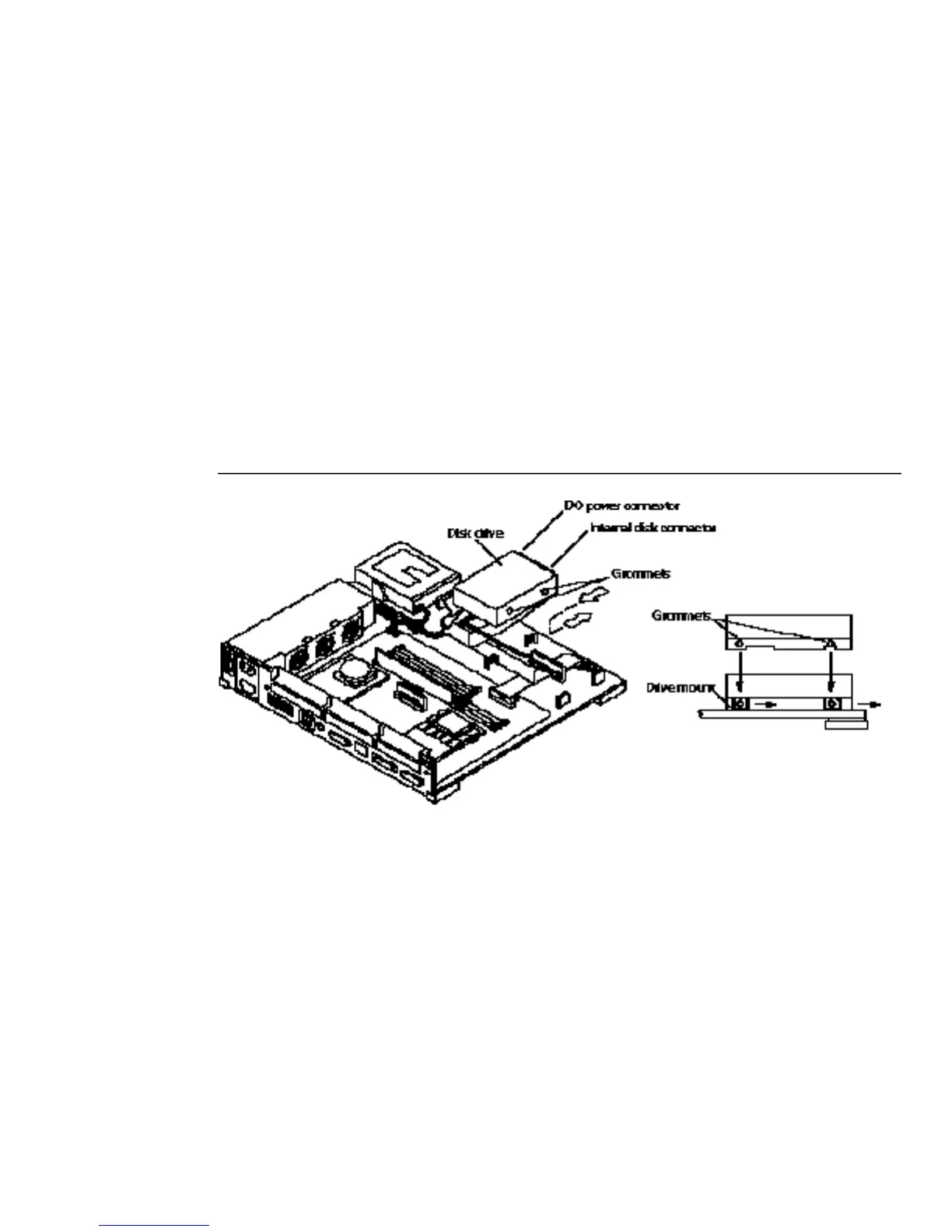 e. Slide the disk drive toward the rear of the chassis to free the grommets