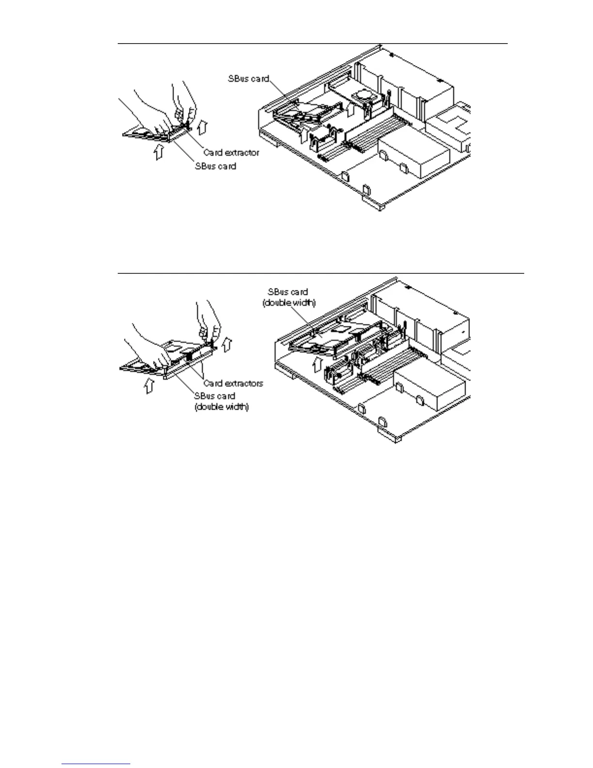 Figure 5–6 Removing a Double-width SBus Card