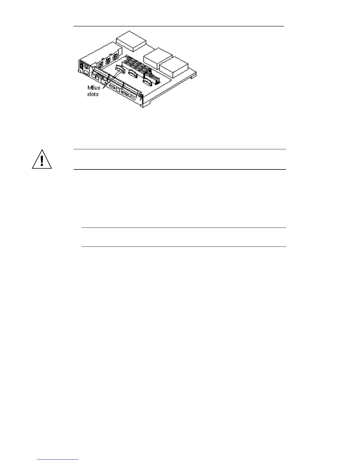 3. Push the MBus module connector down until it is fully seated on the MLB.
