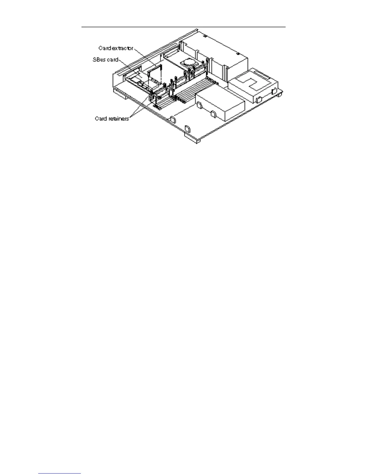 Figure 7–2 SBus Card—Card Retainers and Card Extractor