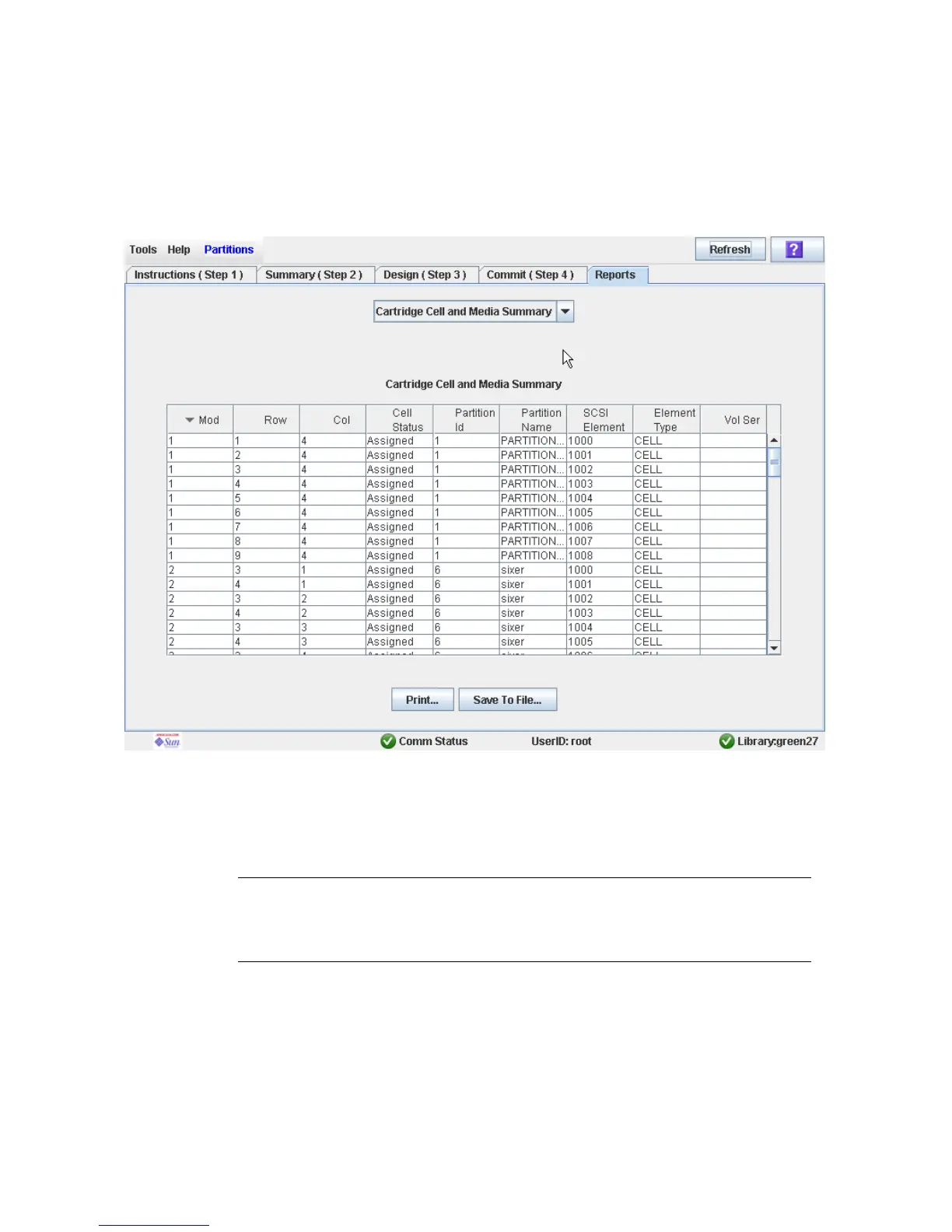 Partitions—Reports—Cartridge Cell and Media