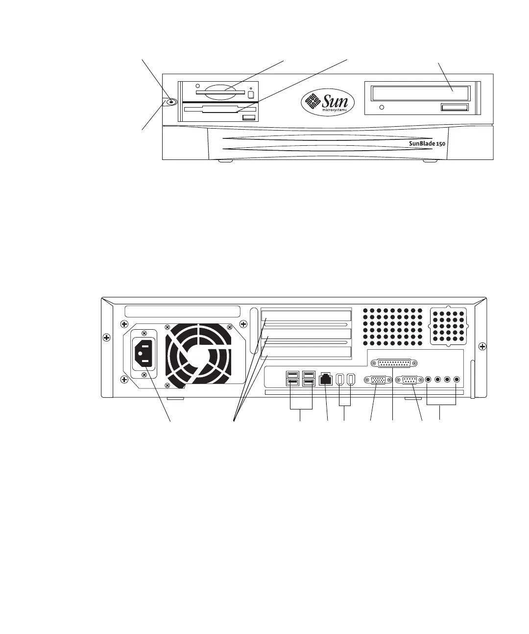 Sun Microsystems SUN BLADE 150 - FIGURE 1-2 Front Panel Overview; FIGURE 1-3 Back Panel Overview