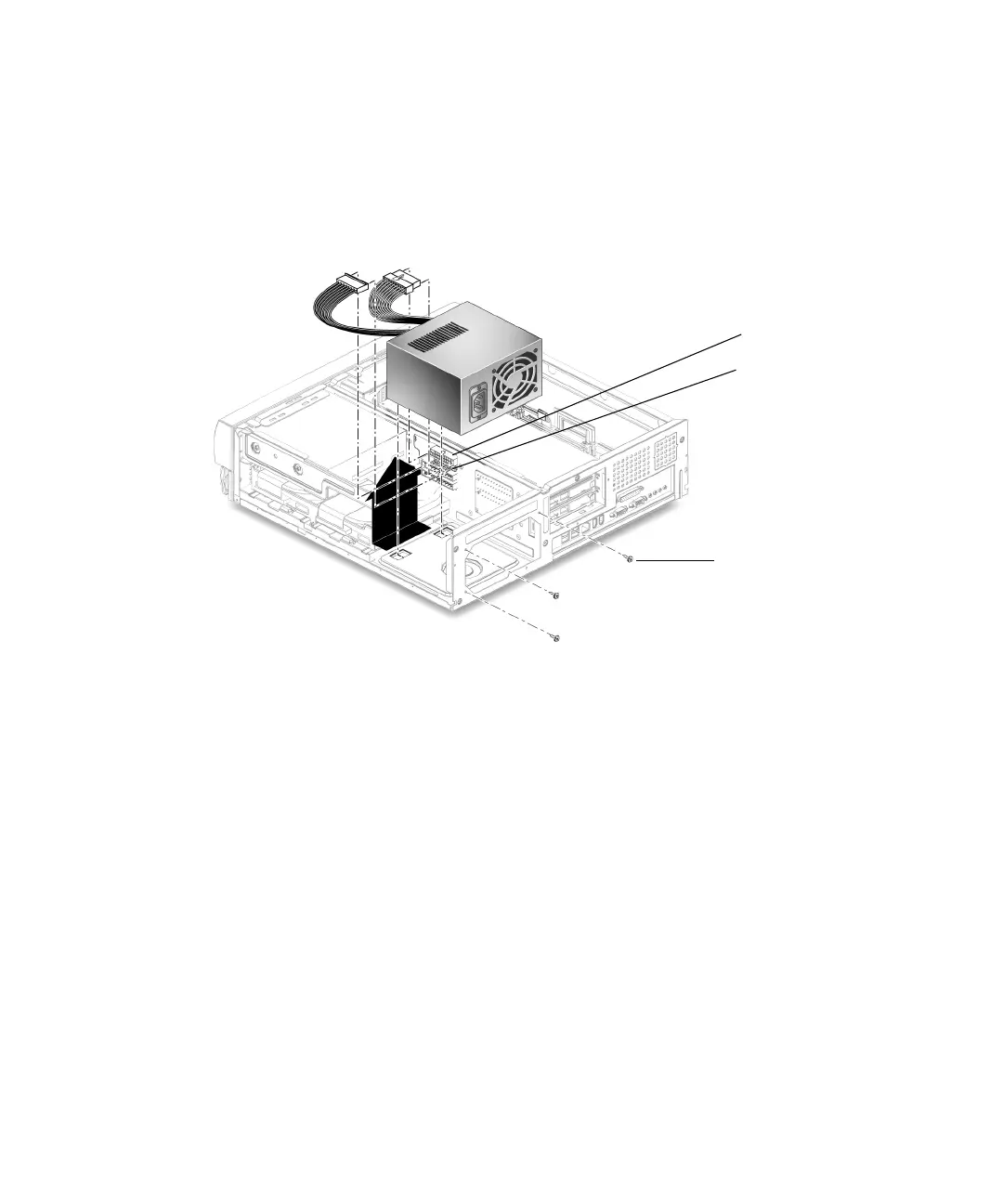 1. Position the power supply into the chassis, tilting it slightly toward the back of