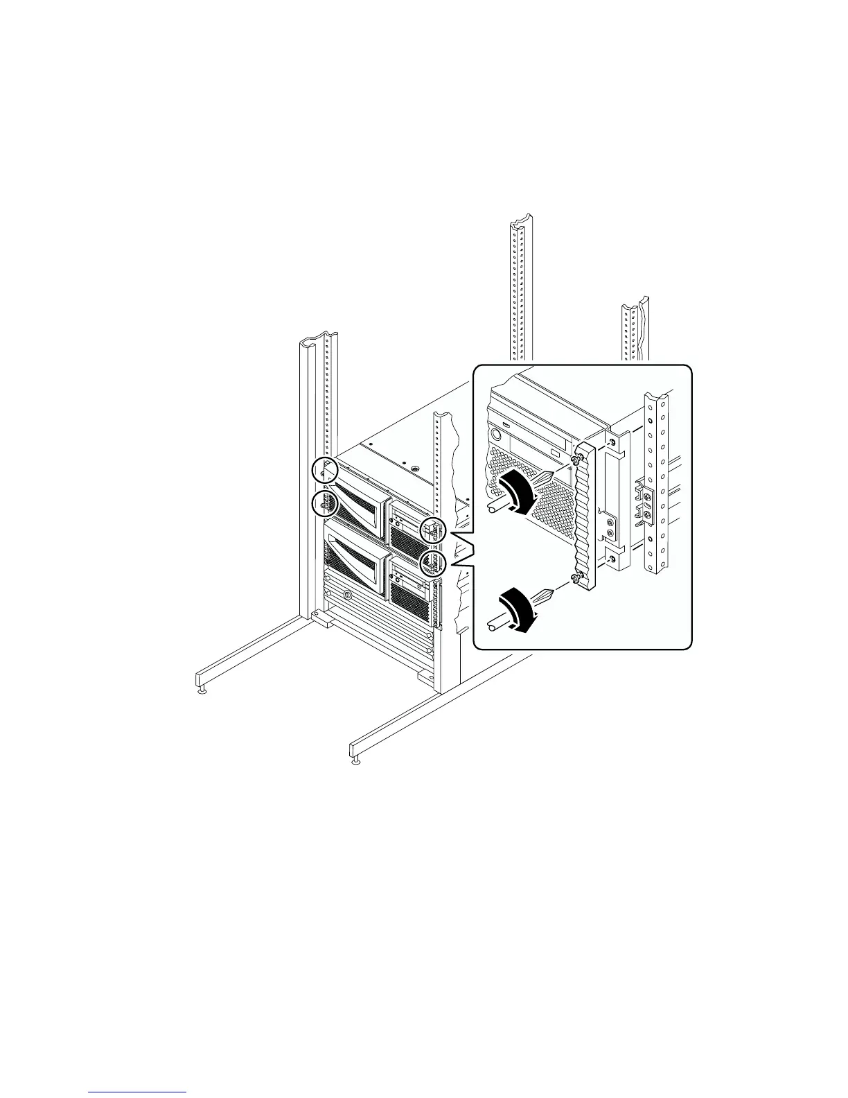 system in the rack enclosure. These screws are in recessed access holes in the