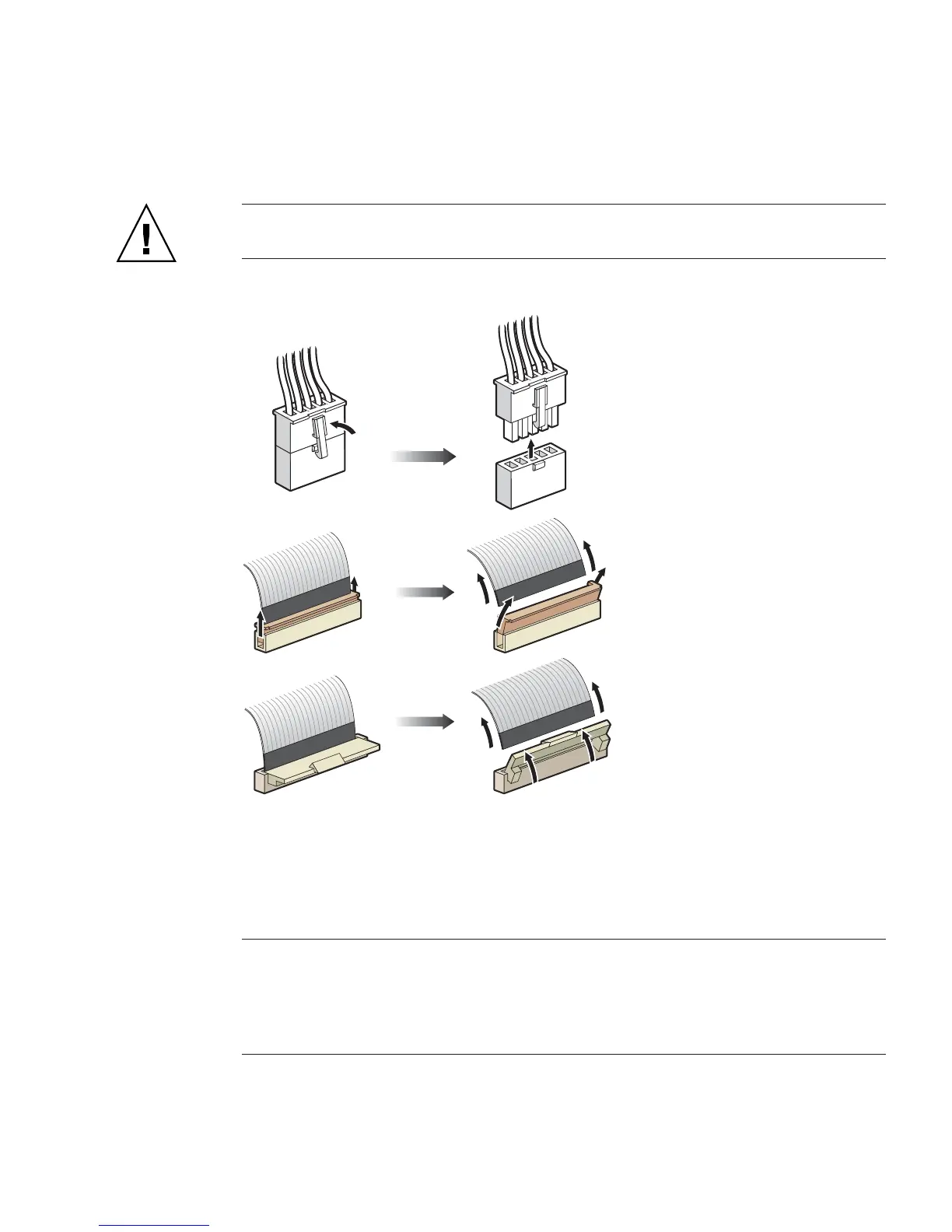 Caution – Use caution when removing cables because connectors and pins are very