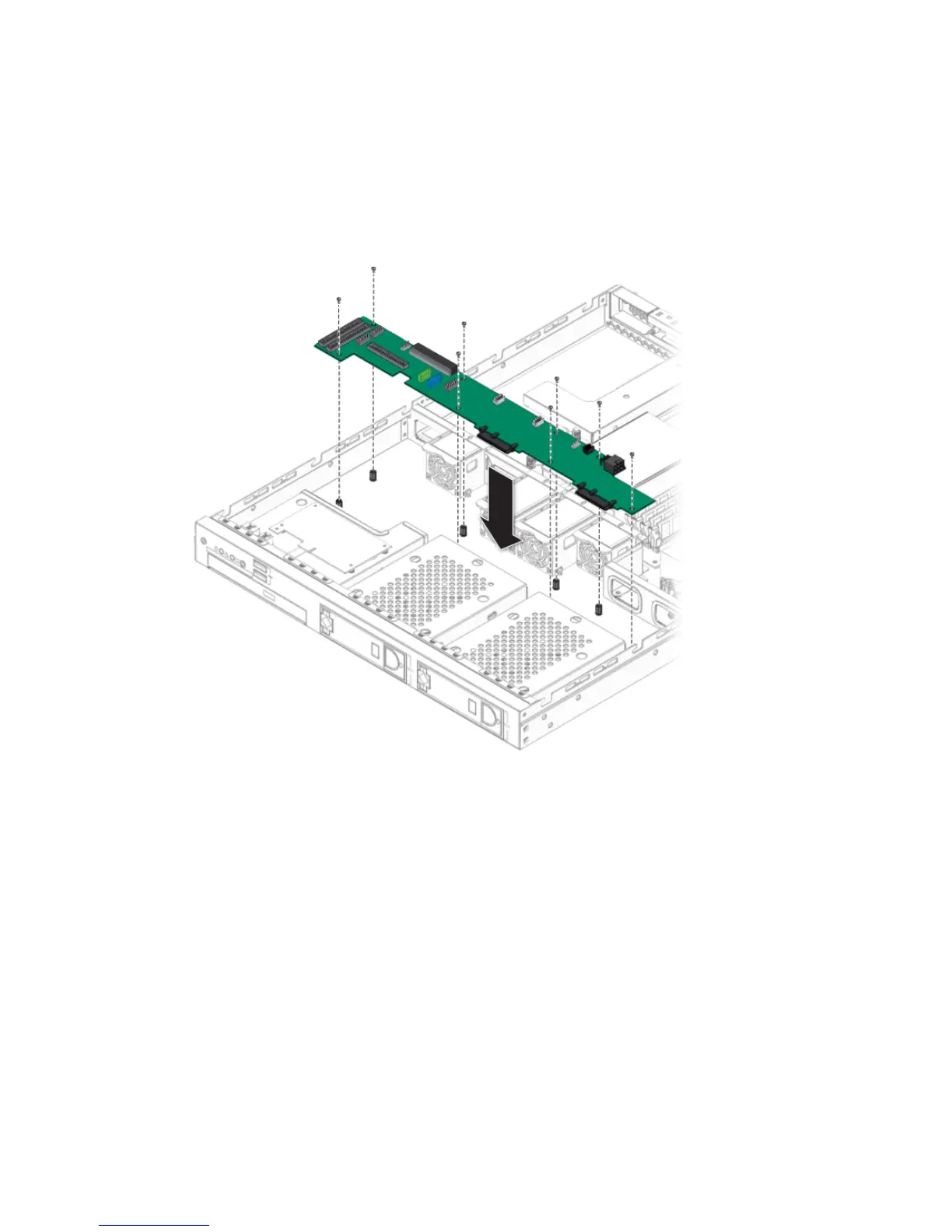 1. Place the new SATA backplane in the chassis.