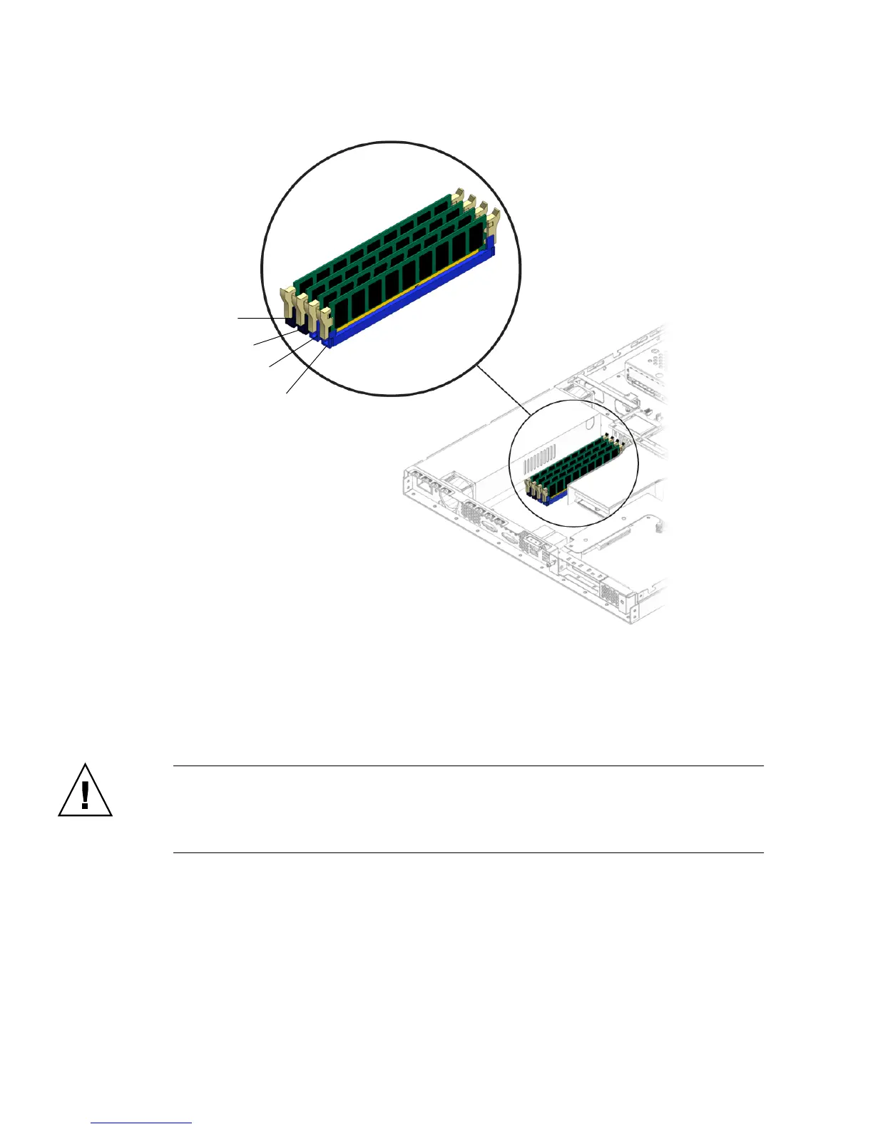 Caution – Do not remove the DIMM from the DIMM slot at an angle. This can